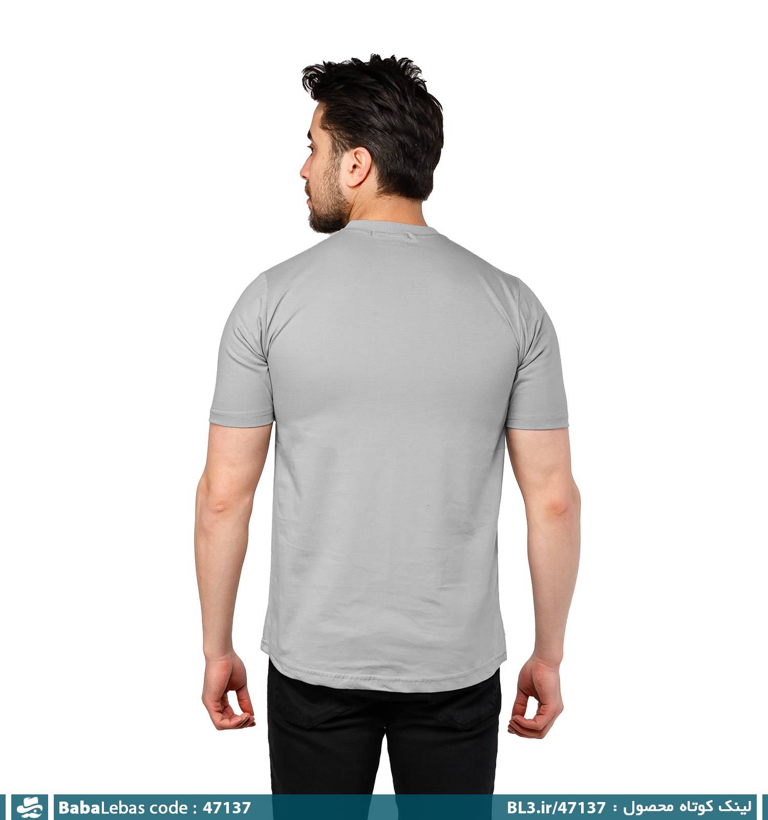 تیشرت یقه گرد مردانه طوسی طرح دار مدل 47137