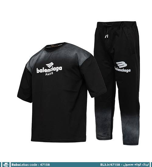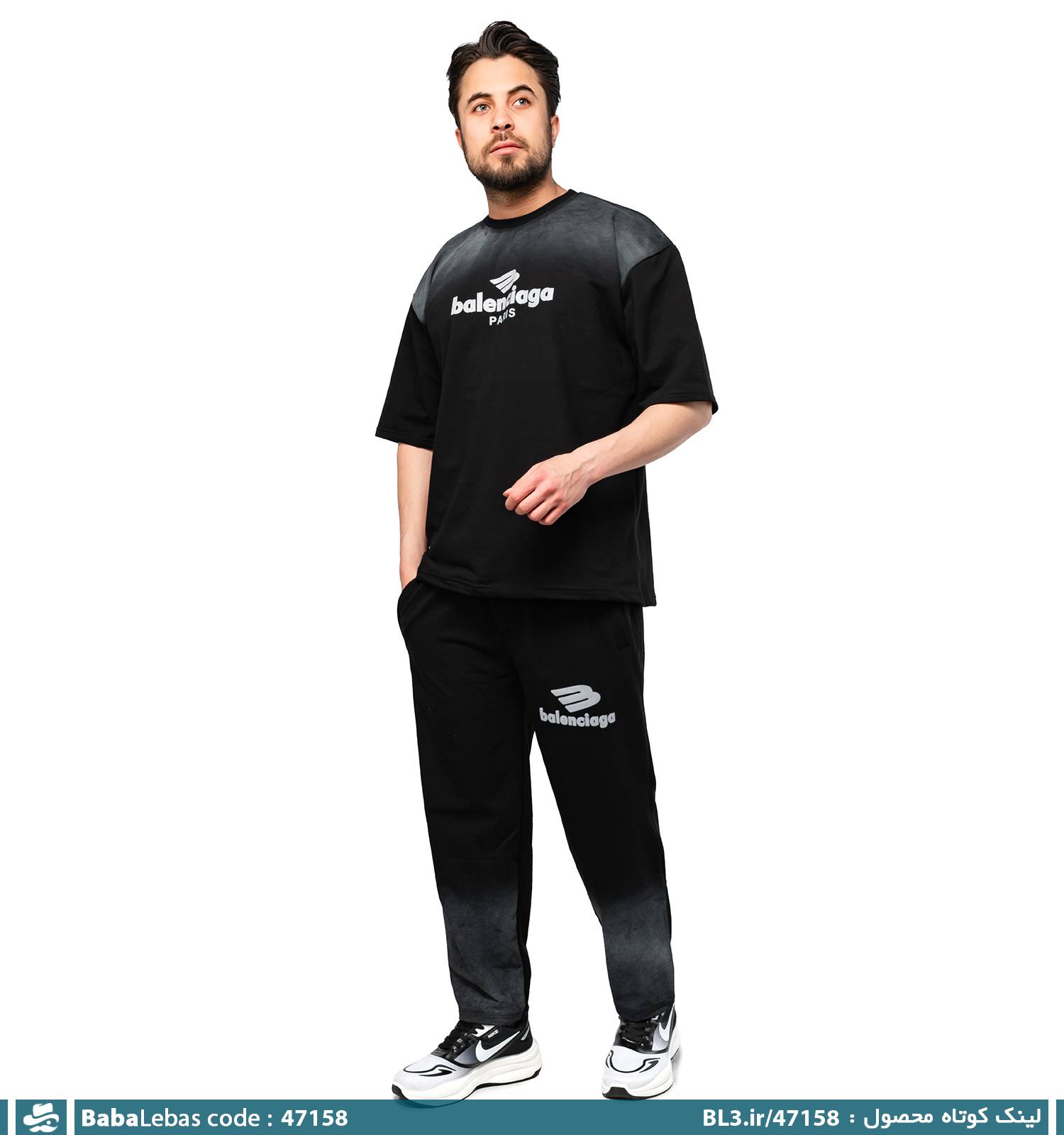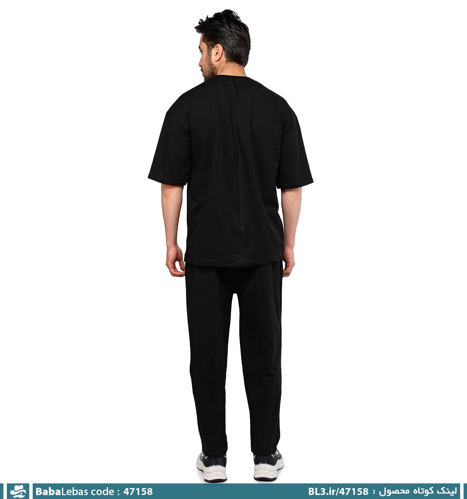 ست تیشرت وشلوار مردانه مشکی آستین کوتاه یقه گرد مدل 47158