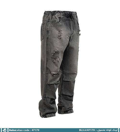 شلوار لی بگ مردانه ذغالی اسپرت مدل 47179