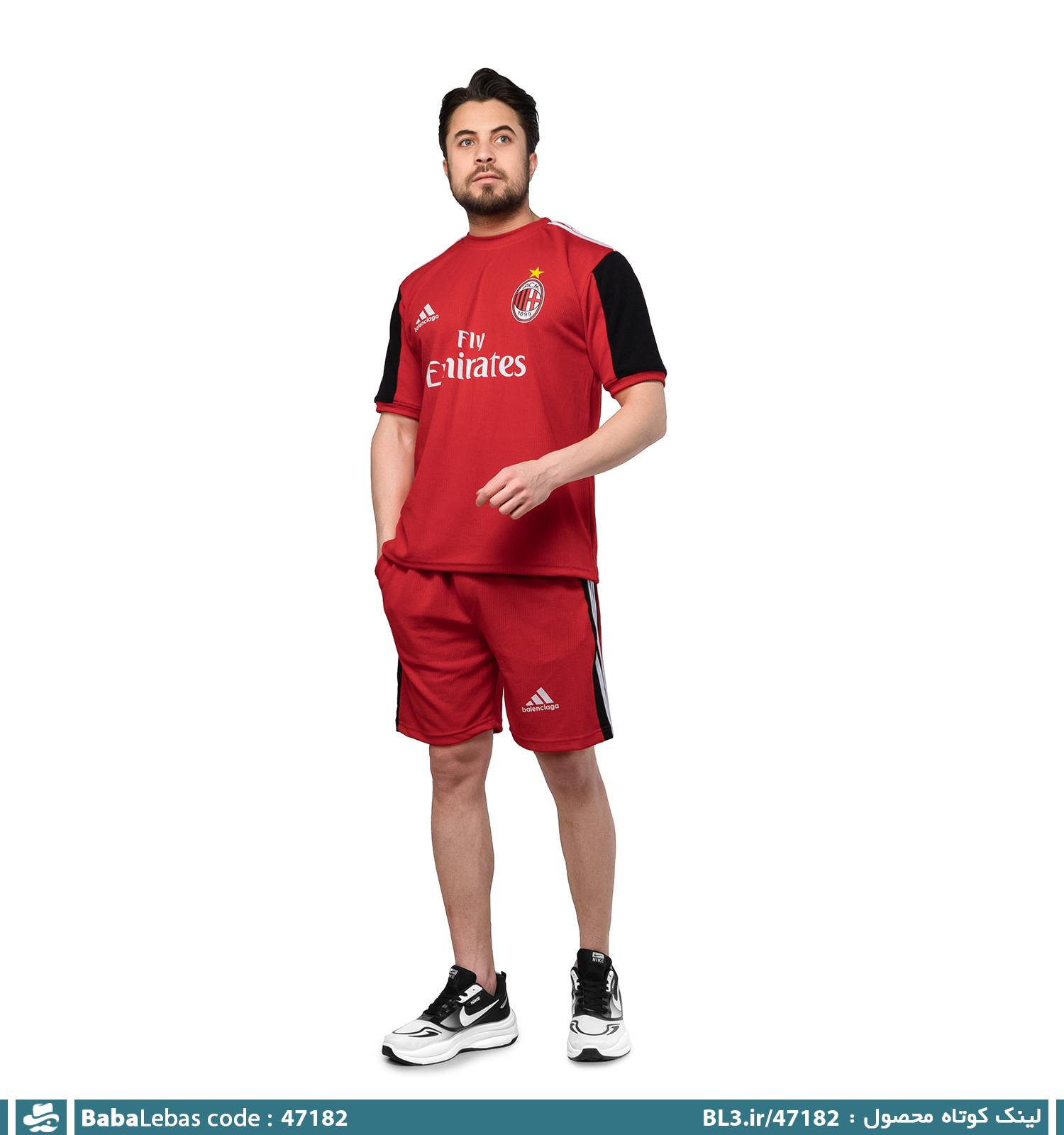 ست تیشرت و شلوارک مردانه باشگاهی آث میلان یقه گرد مدل 47182