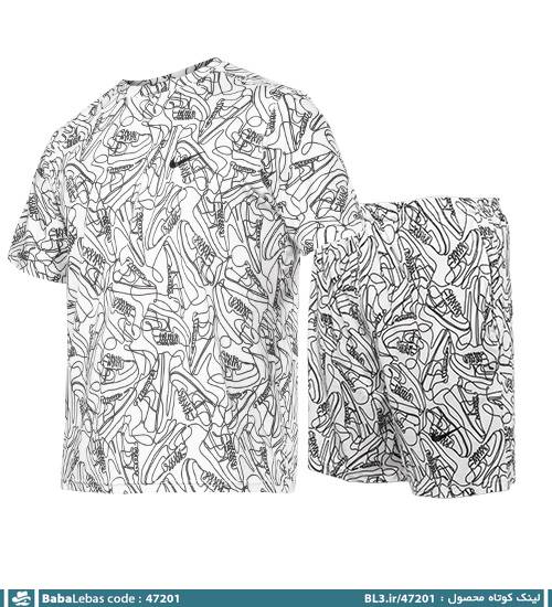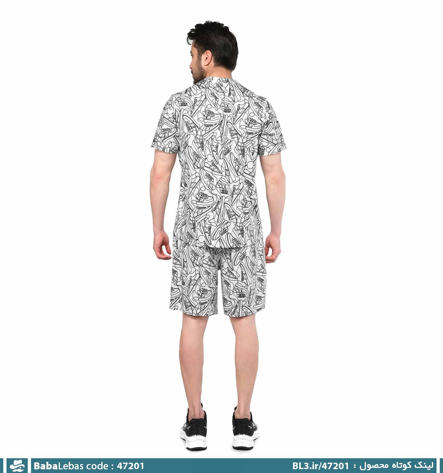 ست تیشرت و شلوارک مردانه سوزنی طرح دار یقه گرد مدل 47201