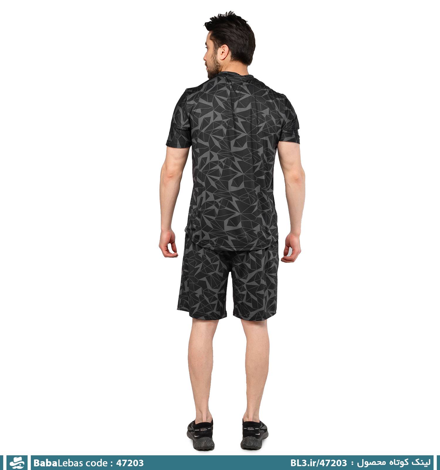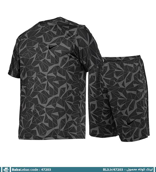 ست تیشرت و شلوارک مردانه سوزنی طرح دار یقه گرد مدل 47203
