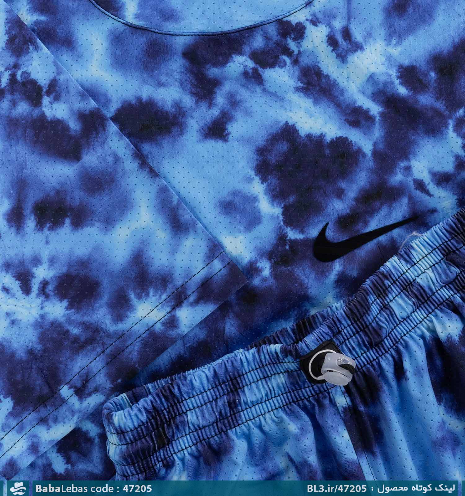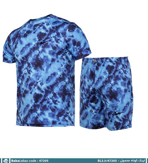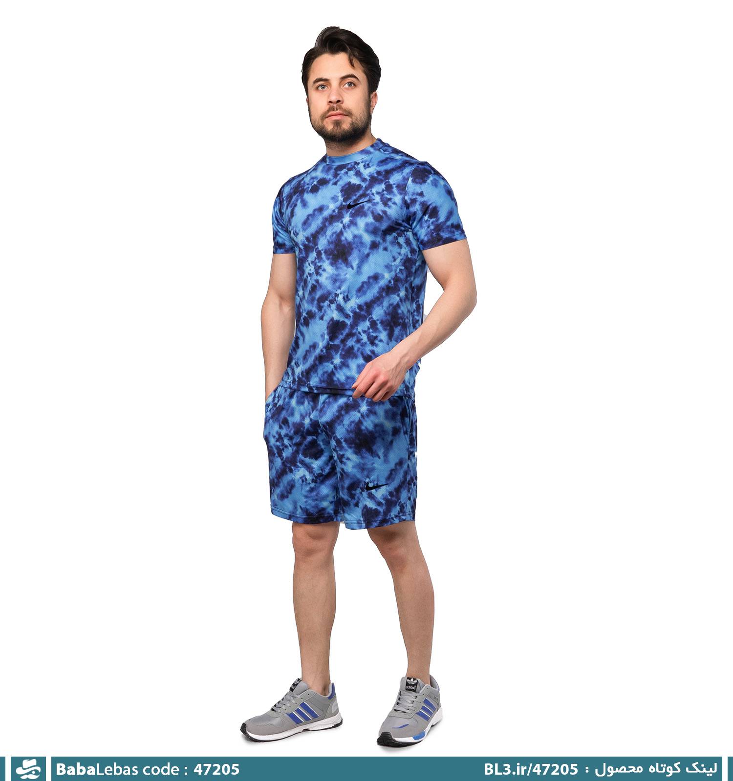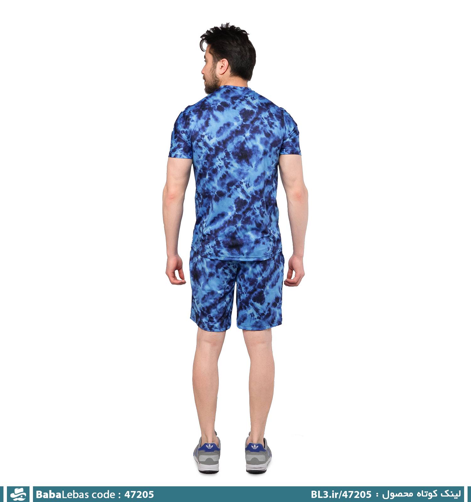 ست تیشرت و شلوارک مردانه سوزنی طرح دار یقه گرد مدل 47205