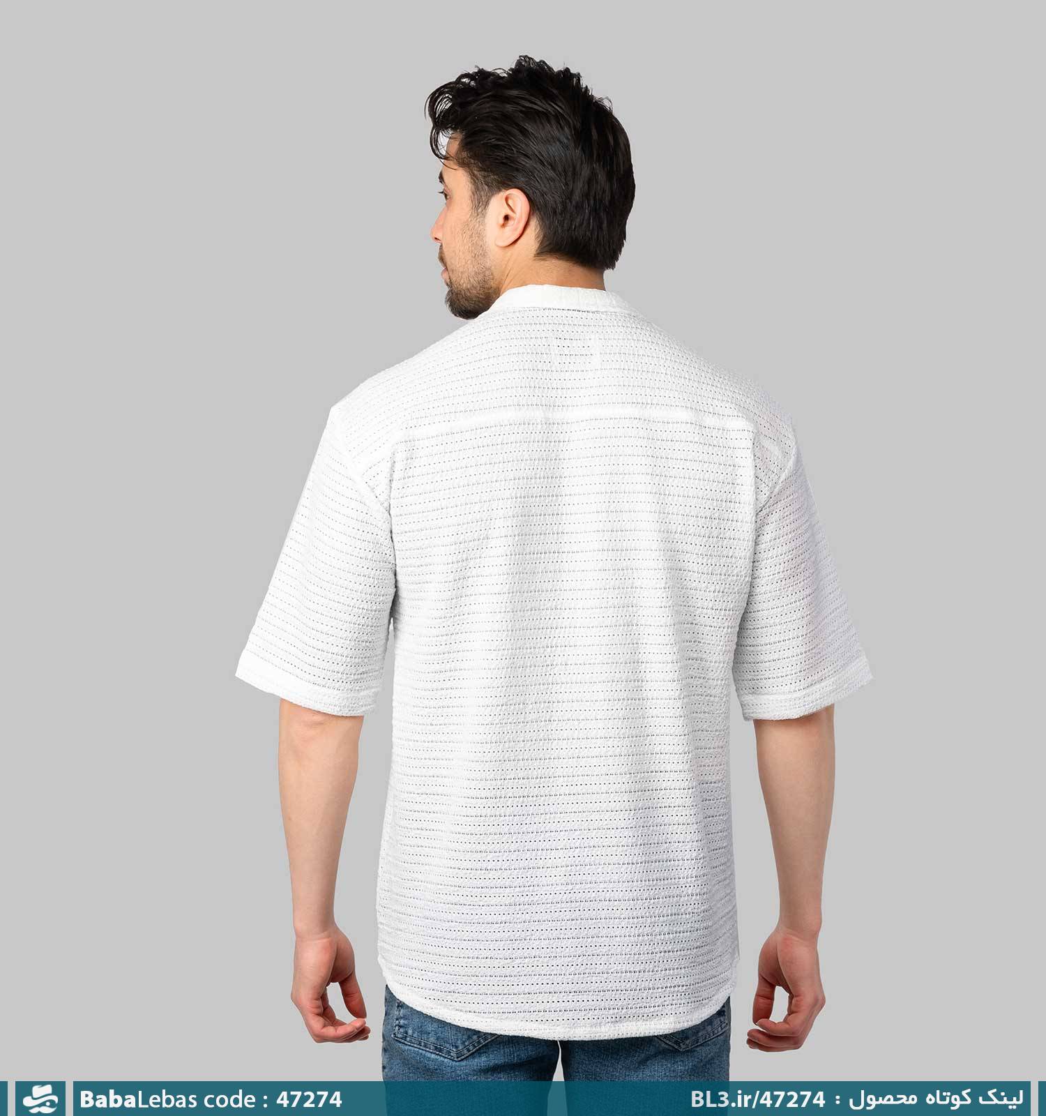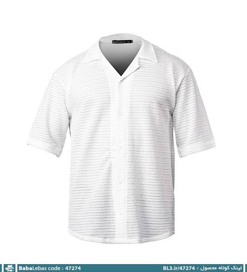 پیراهن اسپرت مراکشی مردانه نیم آستین ساده سفید مدل 47274