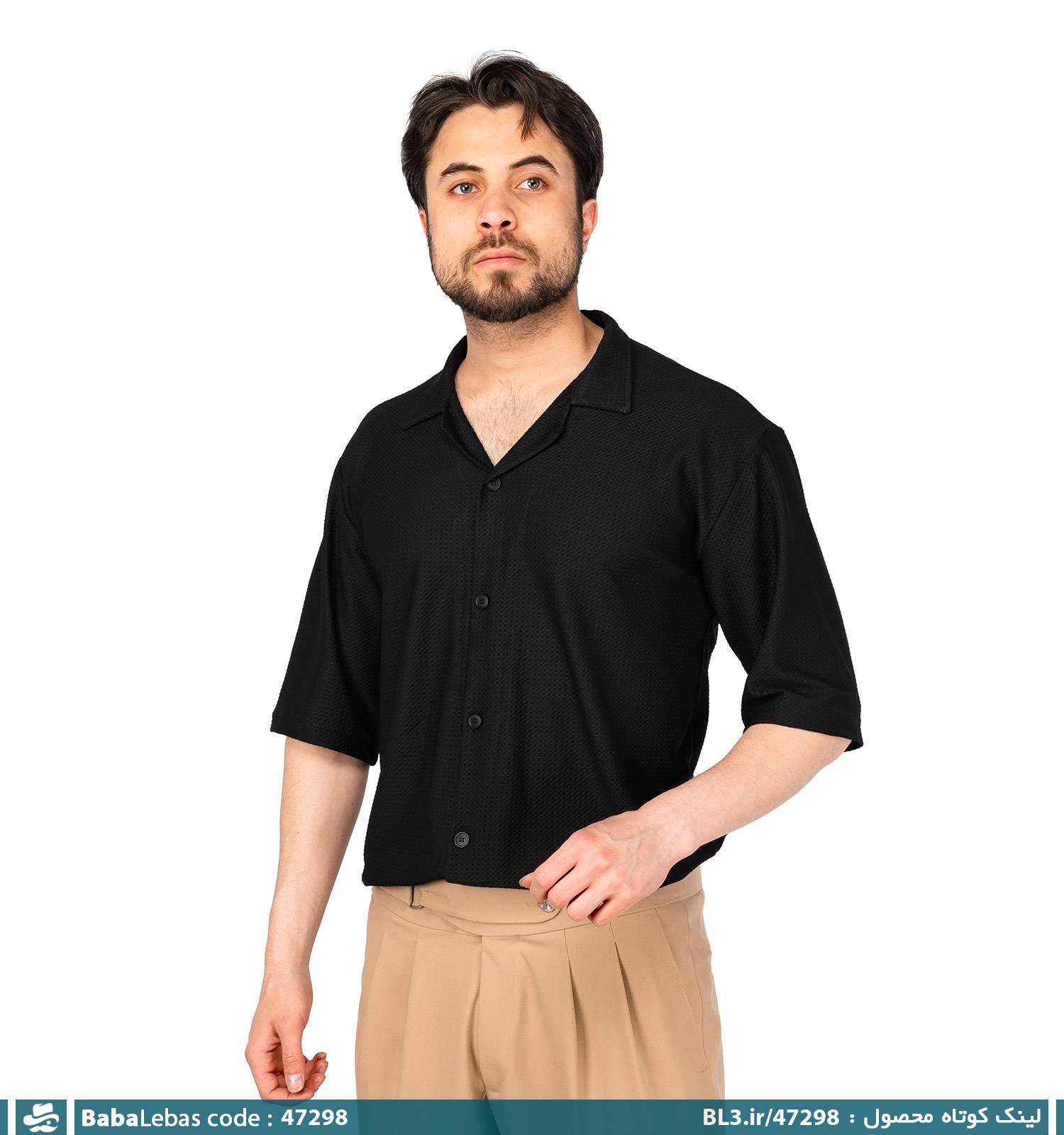 پیراهن اسپرت مراکشی مردانه نیم آستین ساده مشکی مدل 47298