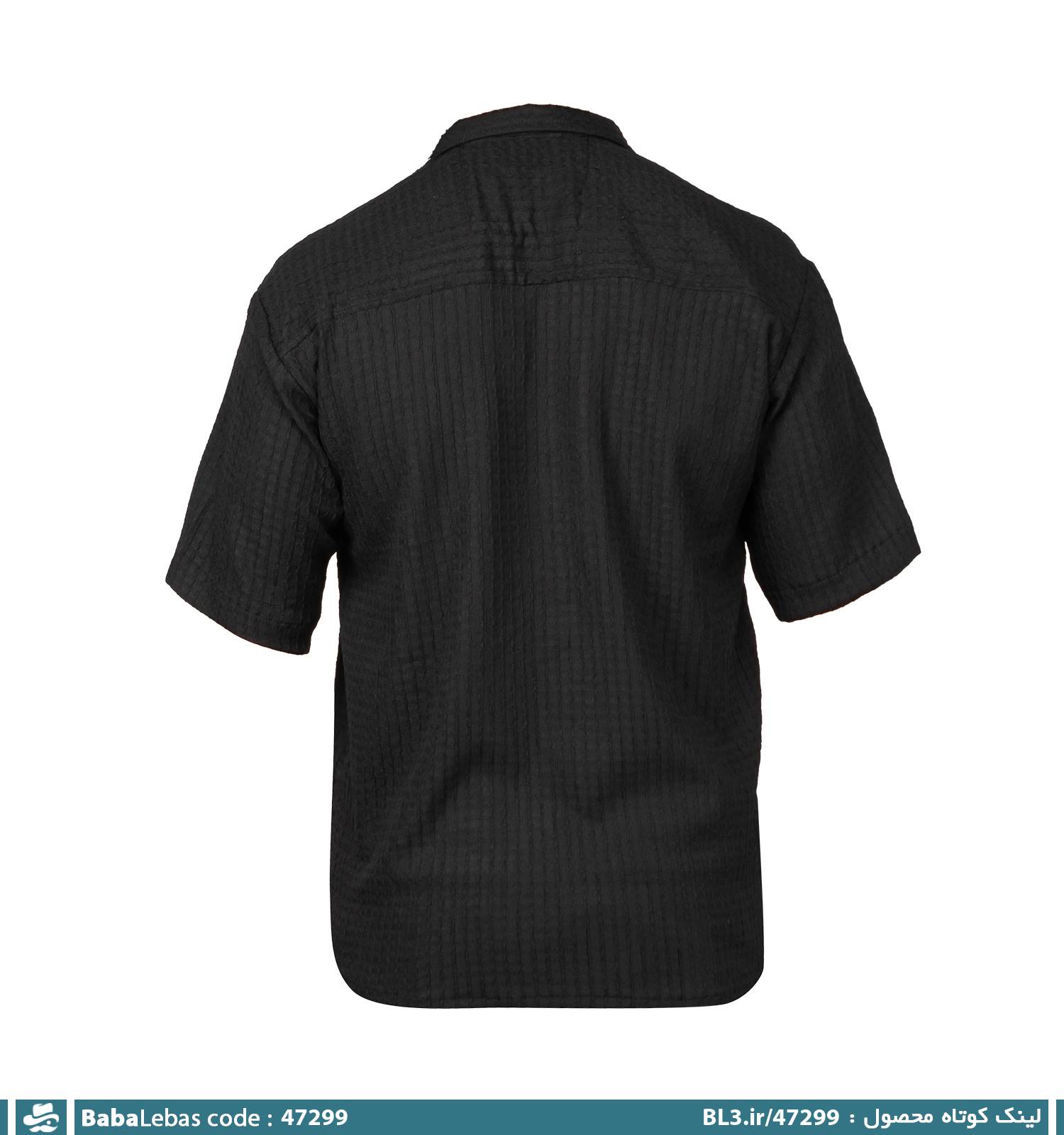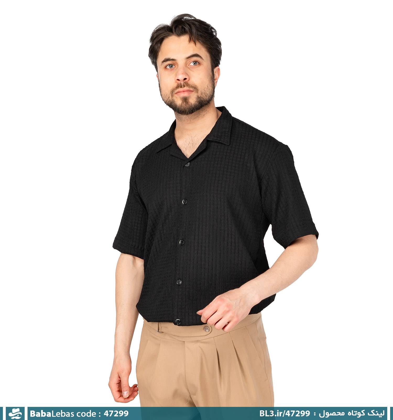 پیراهن اسپرت مراکشی مردانه نیم آستین ساده مشکی مدل 47299
