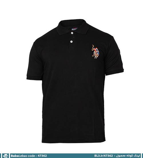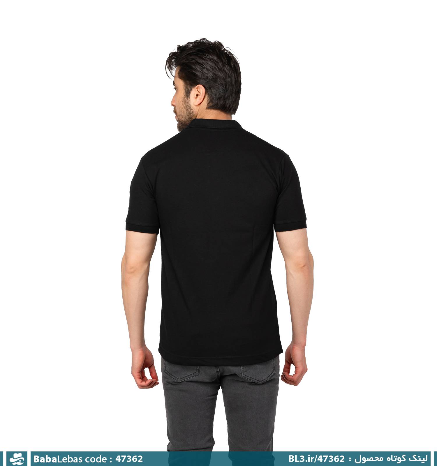 تیشرت یقه دارمردانه مشکی گلدوزی شده مدل 47362