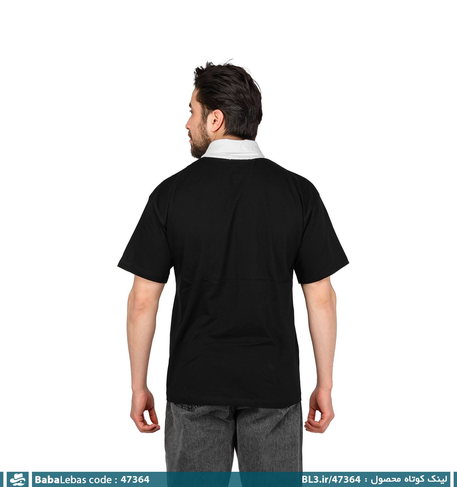 تیشرت یقه دار مردانه مشکی طرح دار مدل 47364