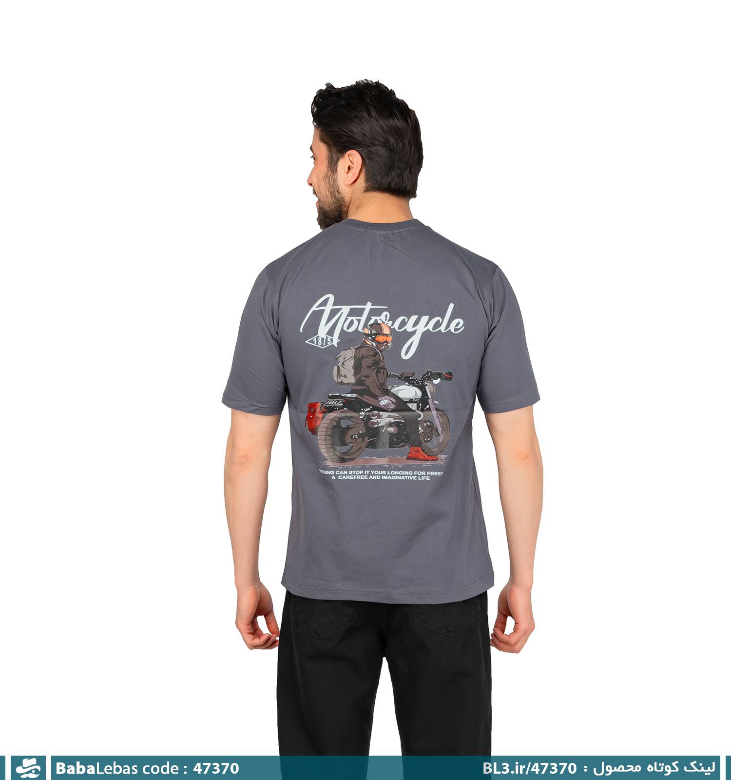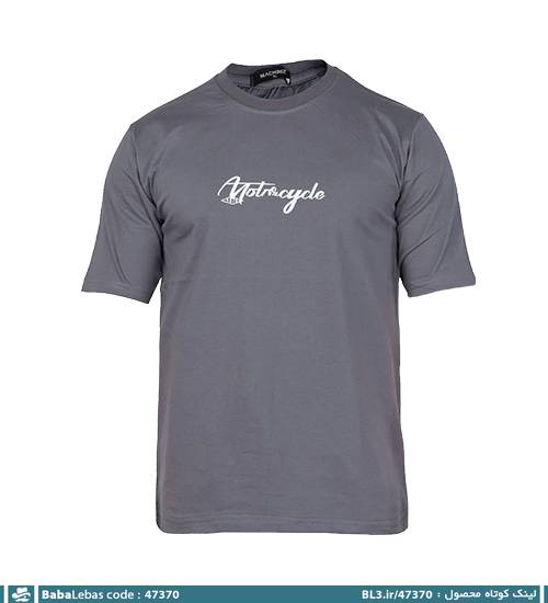 تیشرت یقه گرد مردانه طوسی طرح دار مدل 47370