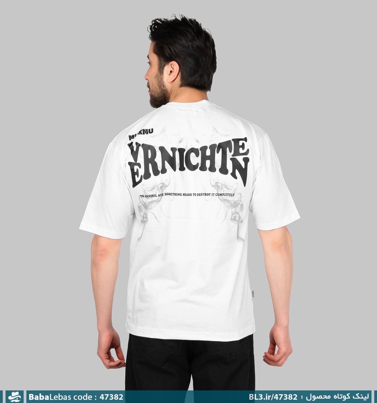 تیشرت یقه گرد مردانه سفید طرح دار مدل 47382