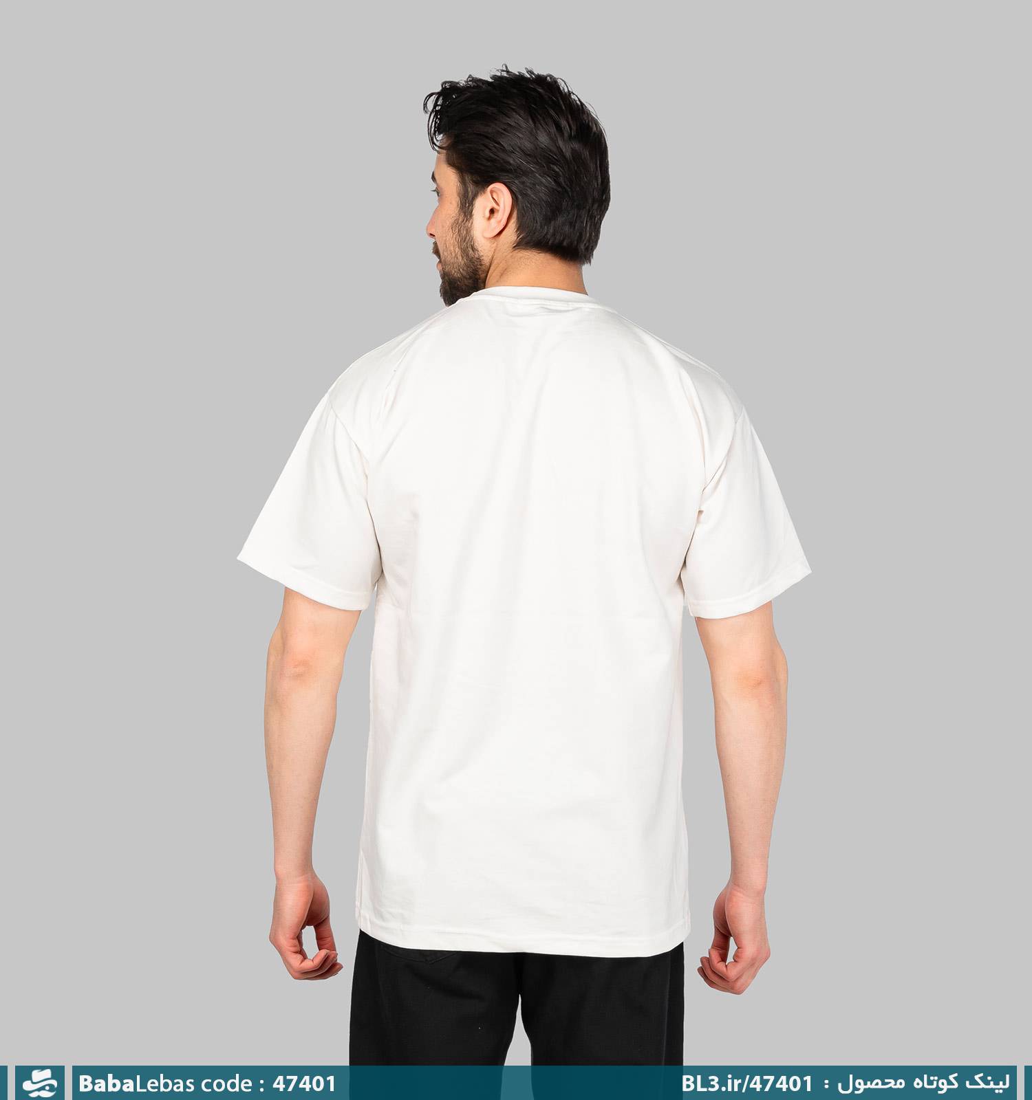 تیشرت یقه گرد مردانه سفید طرح دار مدل 47401