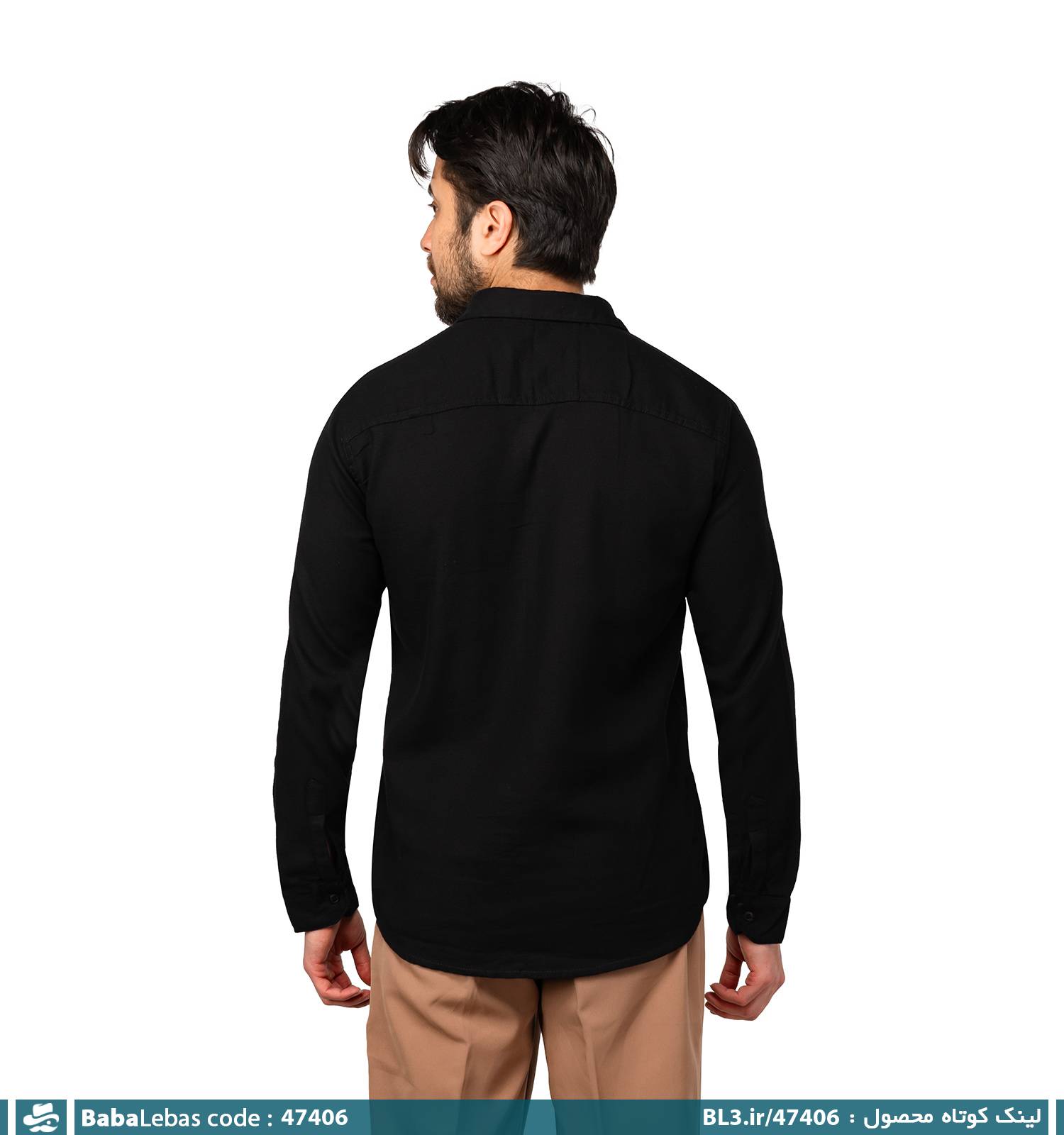 پیراهن اسپرت کنفی مردانه مشکی آستین بلند ساده مدل 47406