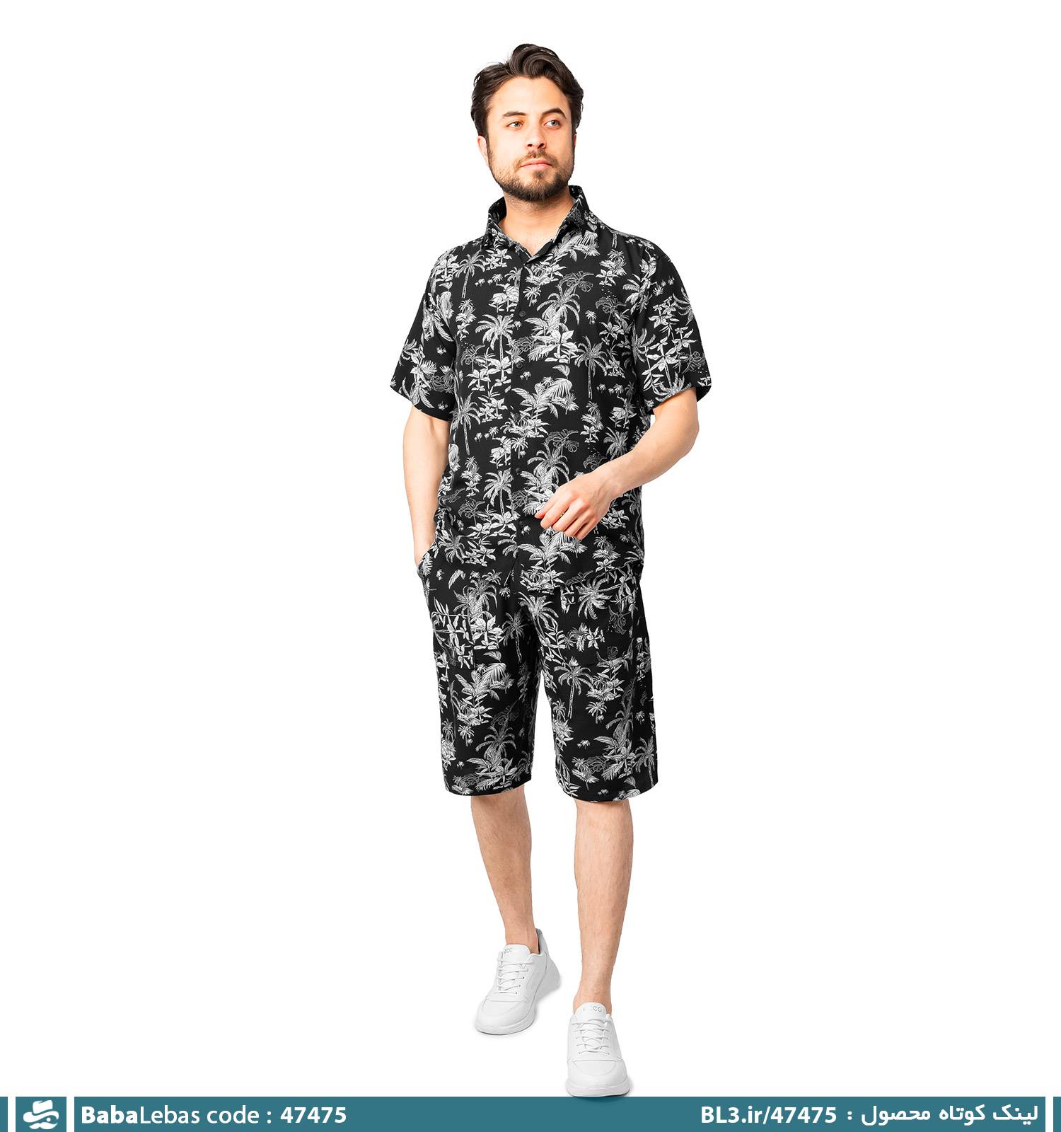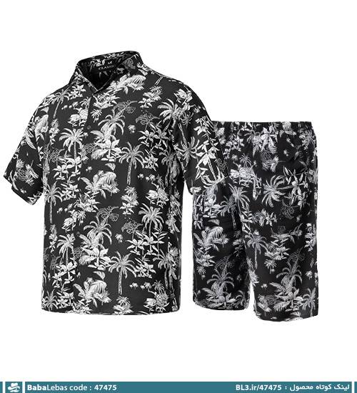 ست مردانه پیراهن و شلوارک کنفی هاوایی مدل 47475