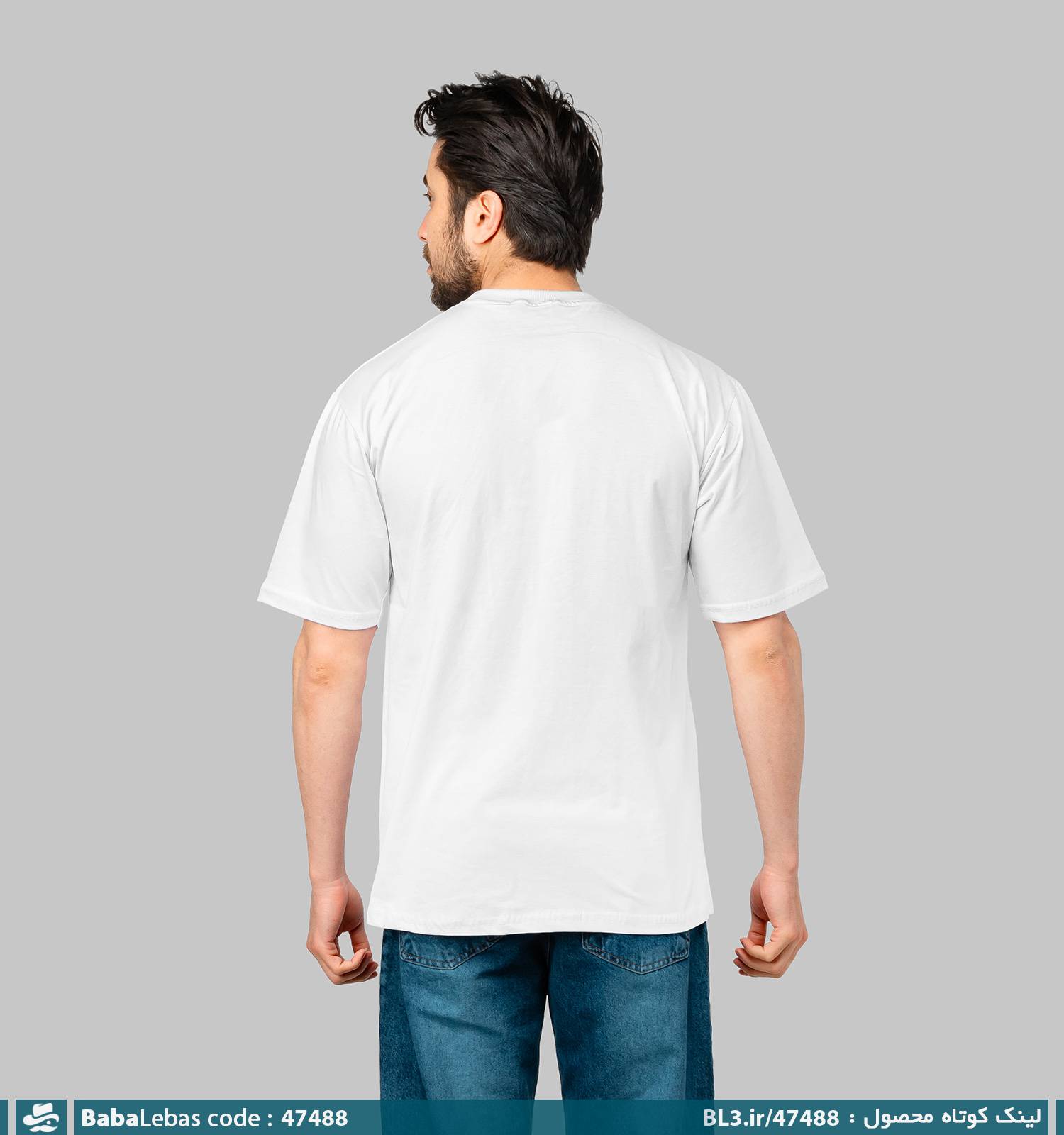 تیشرت یقه گرد مردانه سفید نخ پنبه طرح دار مدل 47488