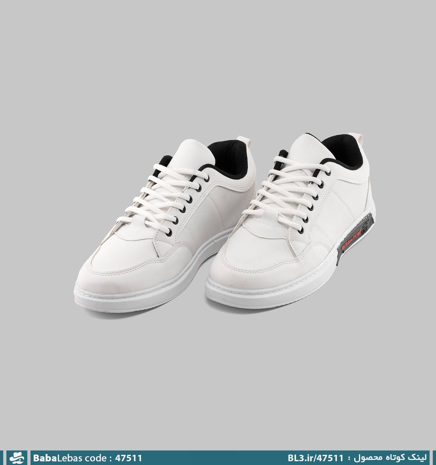 کفش روزمره چرم مصنوعی مردانه سفید بند دار مدل 47511