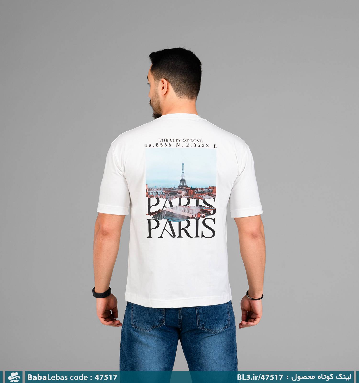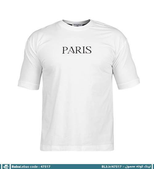 تیشرت باکسی مچینست ماکان یقه گرد مردانه سفید طرح دار مدل 47517