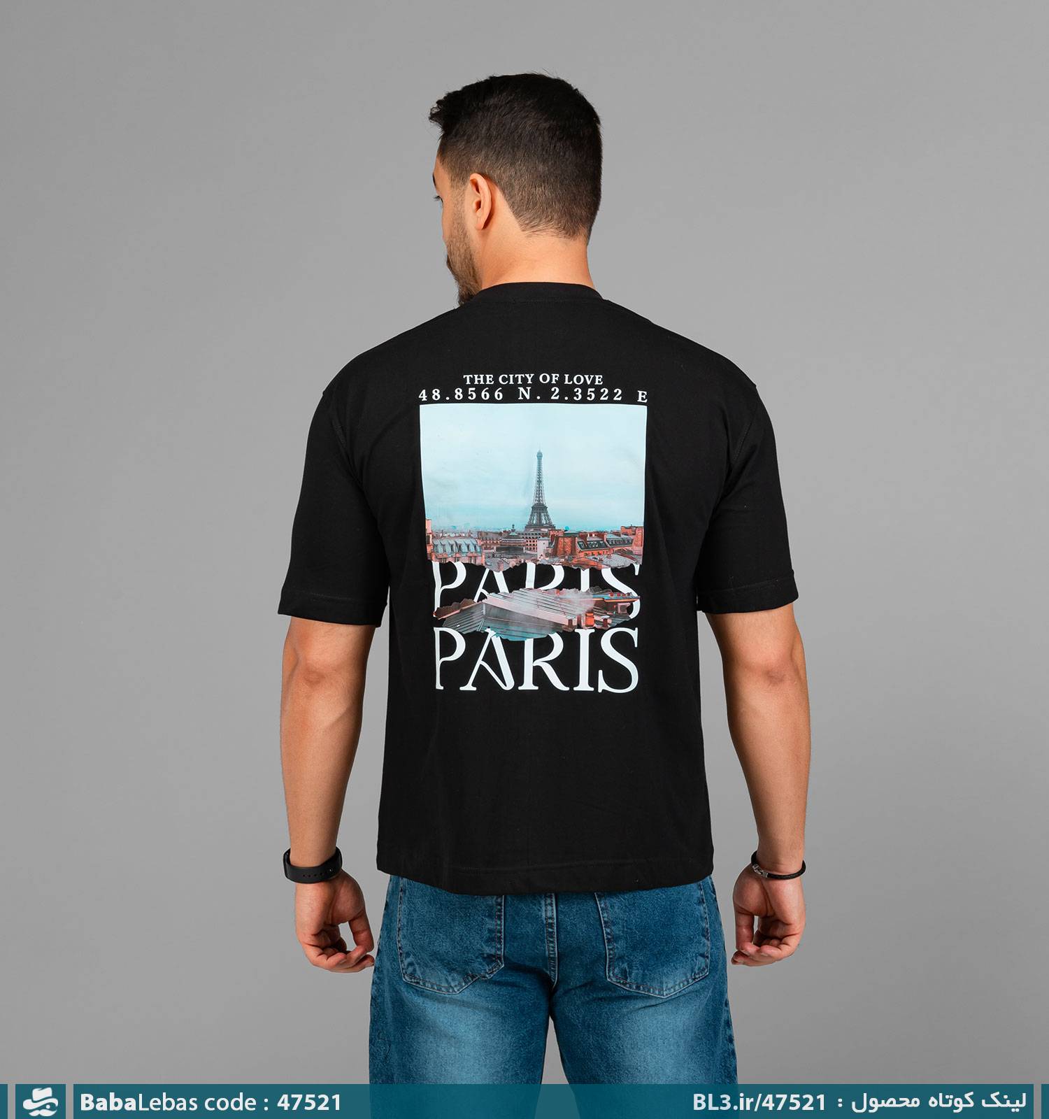 تیشرت باکسی مچینست ماکان یقه گرد مردانه مشکی طرح دار مدل 47521