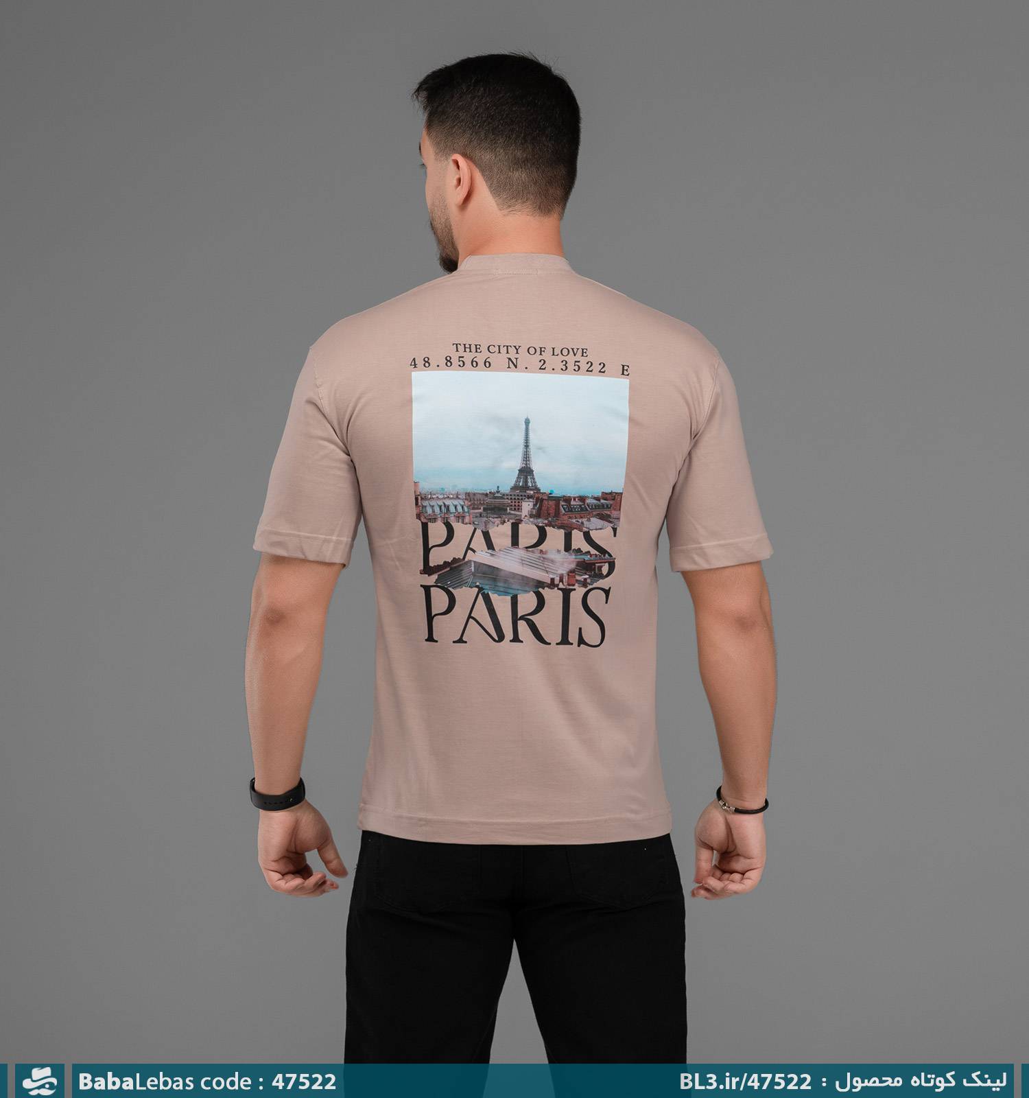 تیشرت باکسی مچینست ماکان یقه گرد مردانه کرمی طرح دار مدل 47522