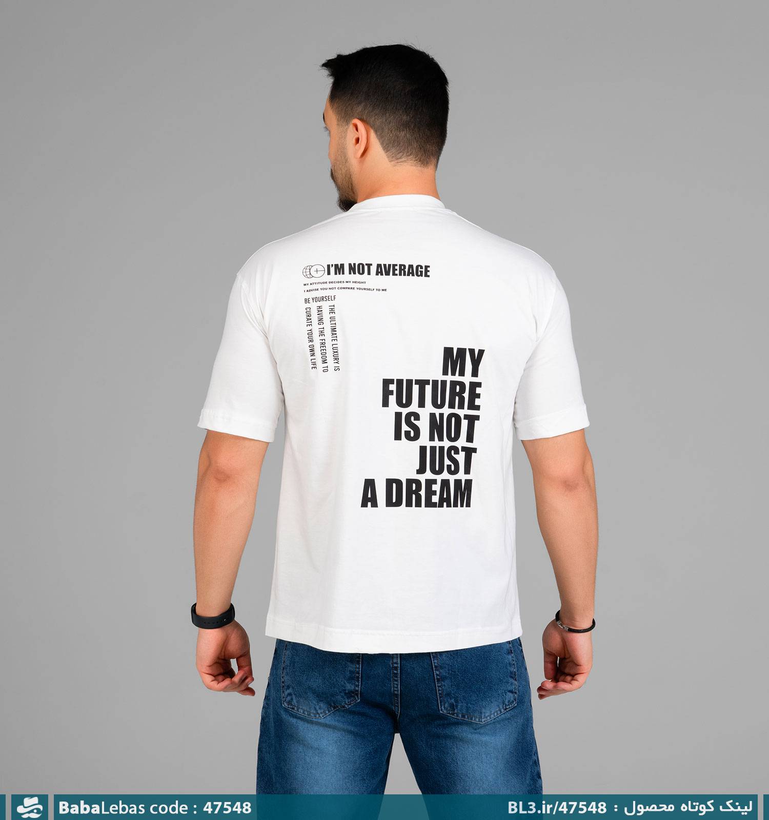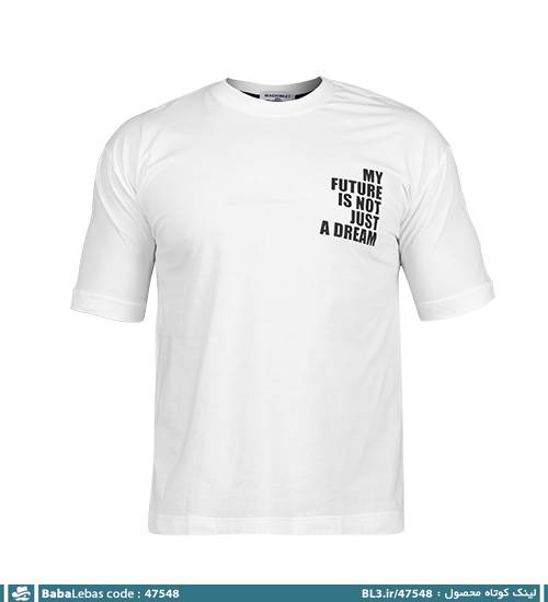 تیشرت باکسی مچینست ماکان یقه گرد مردانه طرح دار سفید مدل 47548