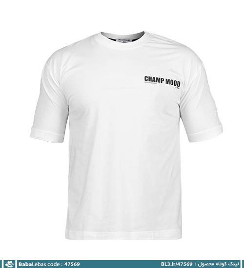 تیشرت باکسی مچینست ماکان یقه گرد مردانه سفید طرح دار مدل 47569