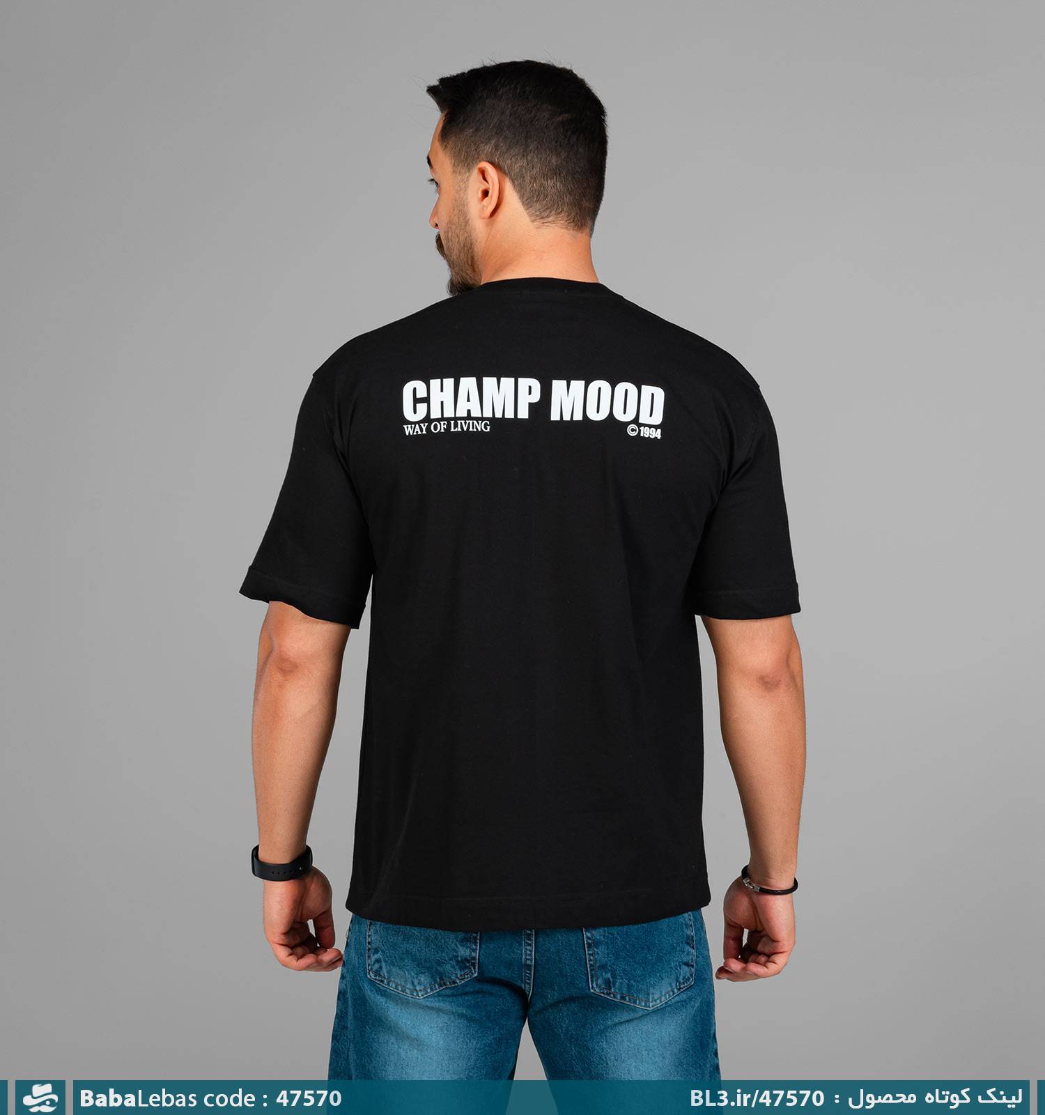تیشرت باکسی مچینست ماکان یقه گرد مردانه مشکی طرح دار مدل 47570