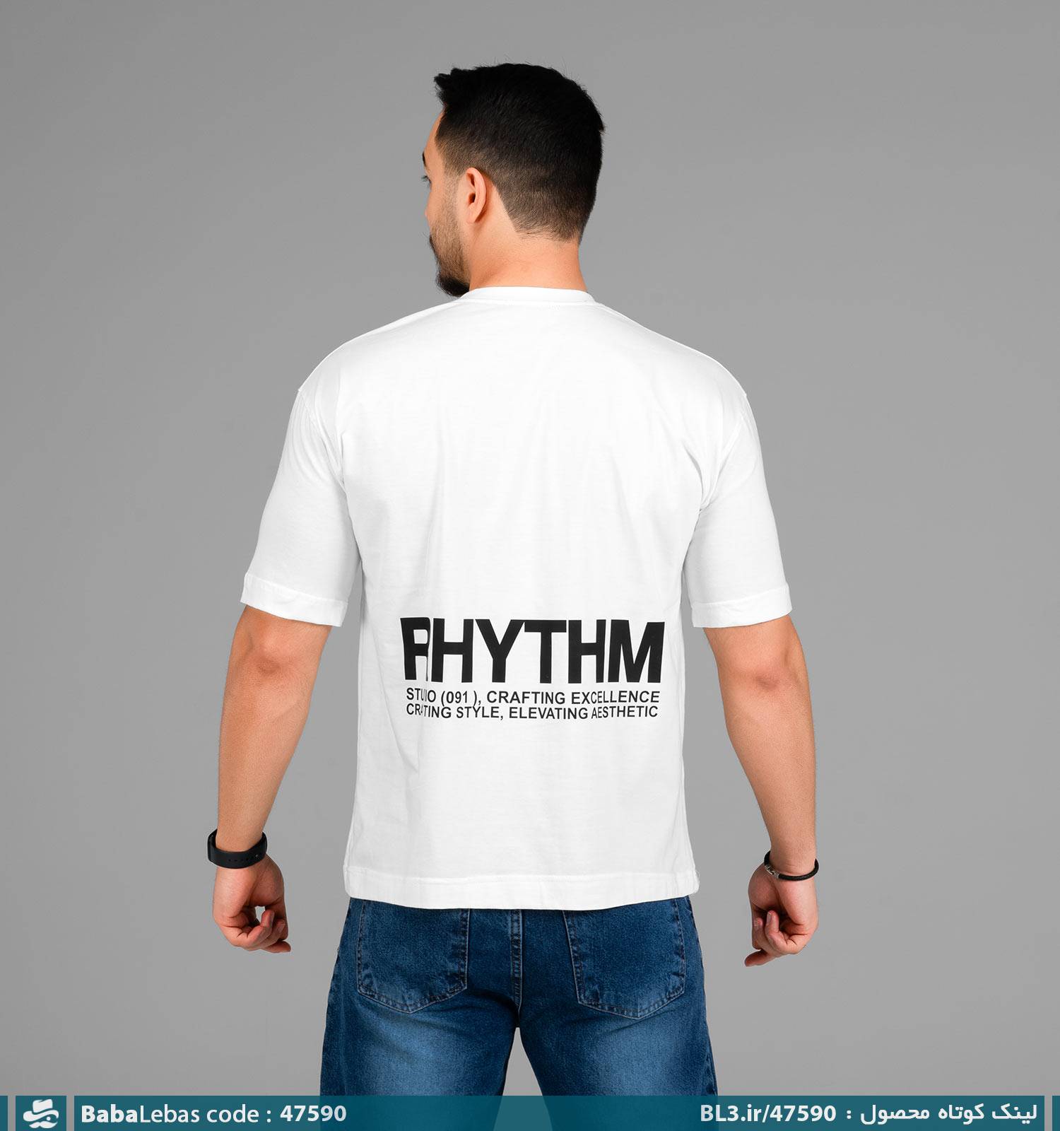 تیشرت باکسی مچینست ماکان یقه گرد مردانه سفید طرح دار مدل 47590