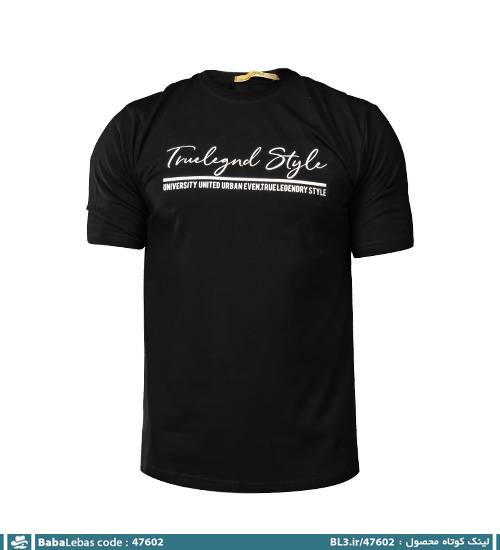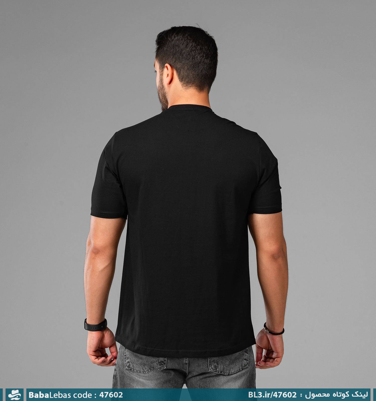 تیشرت یقه گرد مردانه مشکی فری استایل نخ پنبه طرح دار مدل 47602