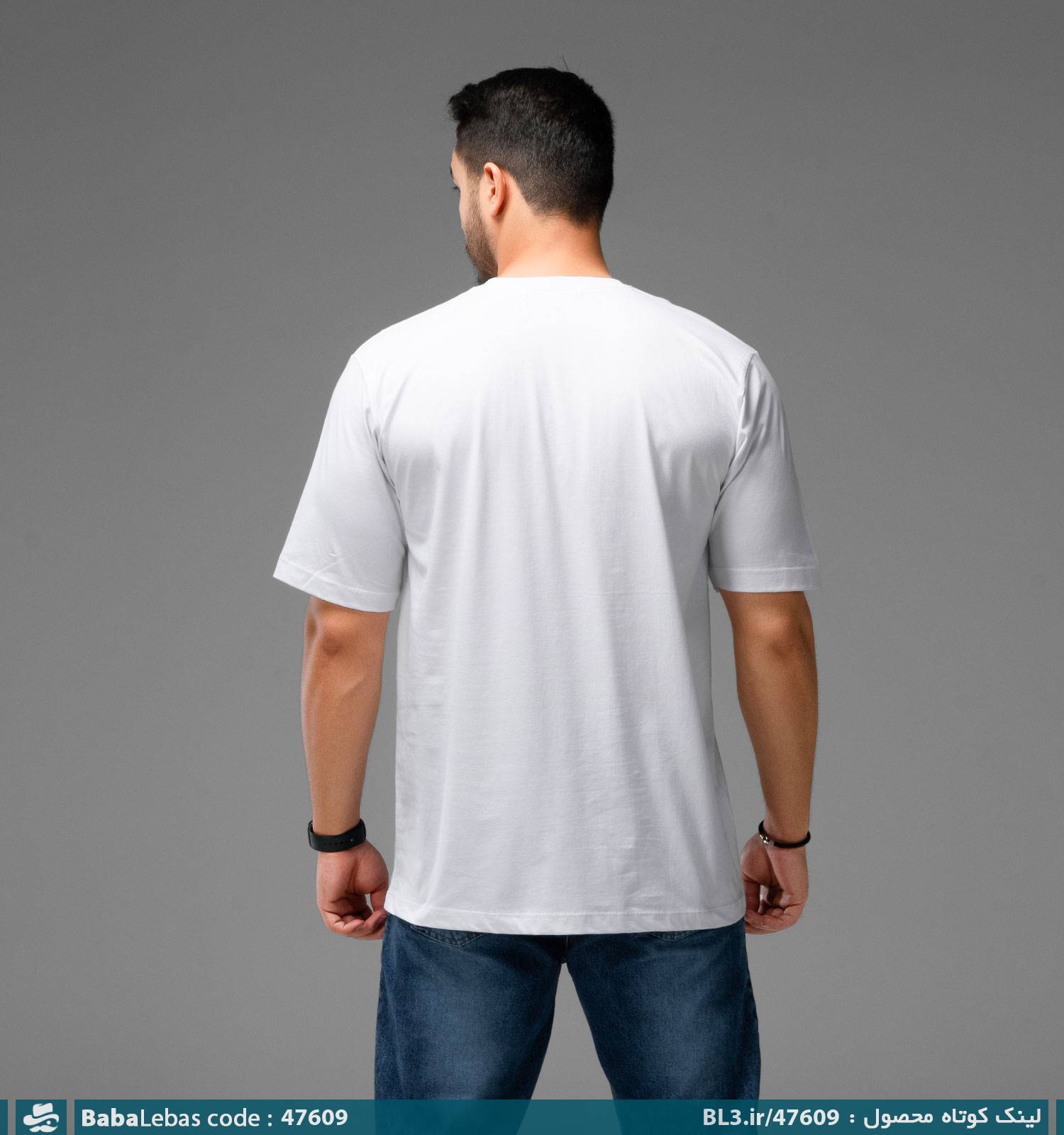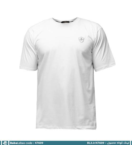 تیشرت یقه گرد مردانه سفید نخ پنبه گلدوزی شده مدل 47609