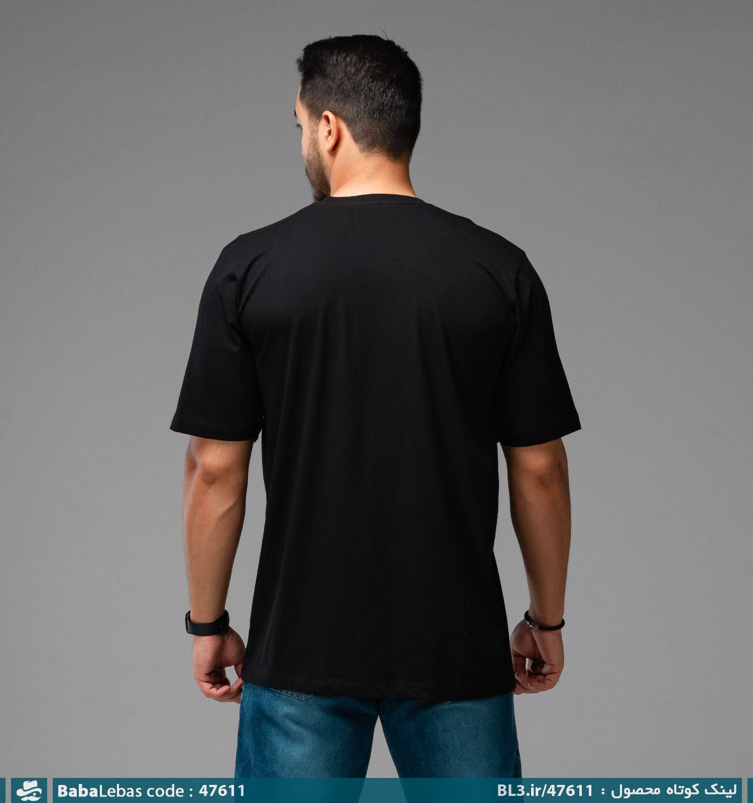 تیشرت یقه گرد مردانه مشکی نخ پنبه گلدوزی شده مدل 47611