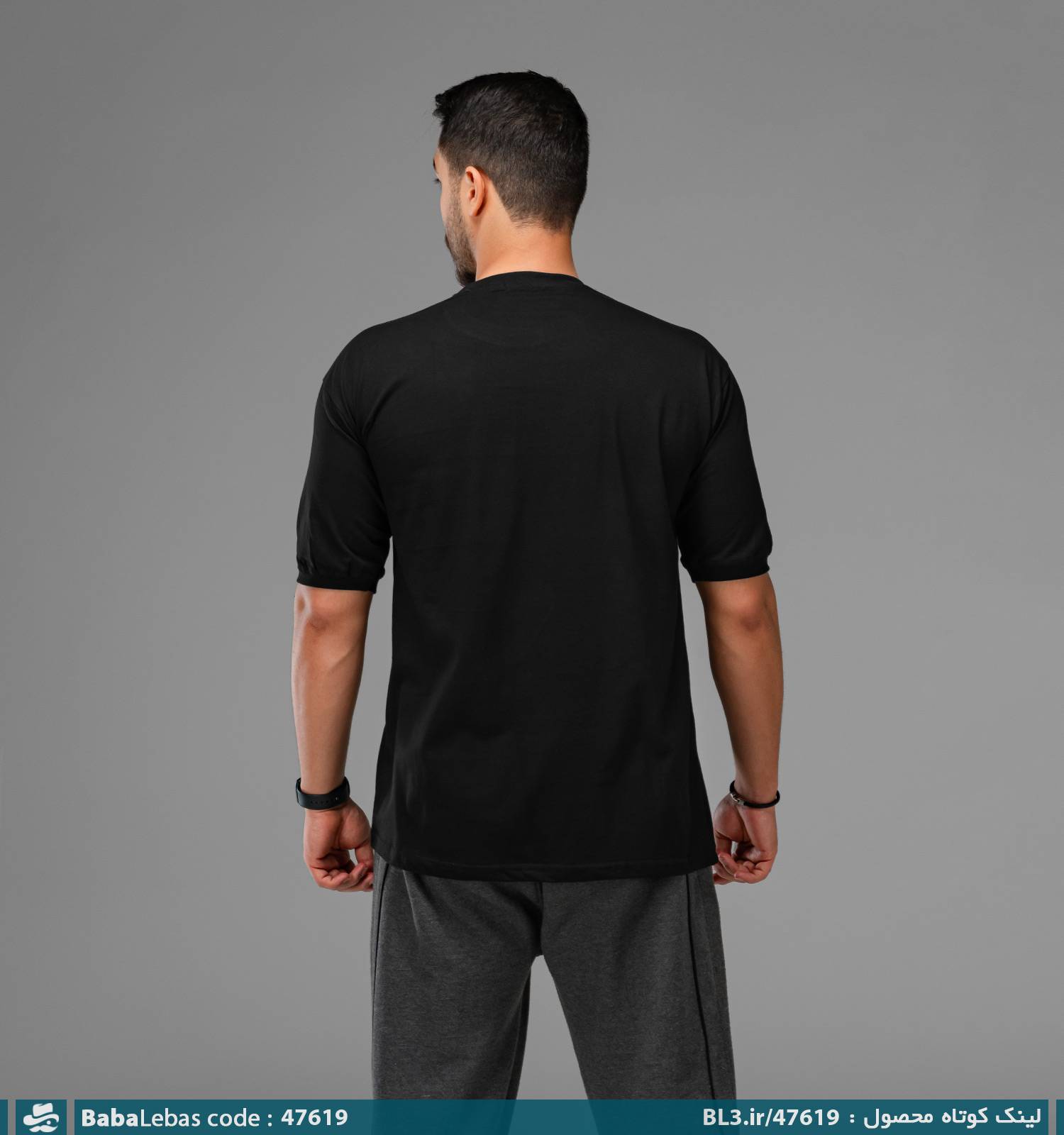 تیشرت نخ پنبه یقه گرد مردانه مشکی طرح دار مدل 47619