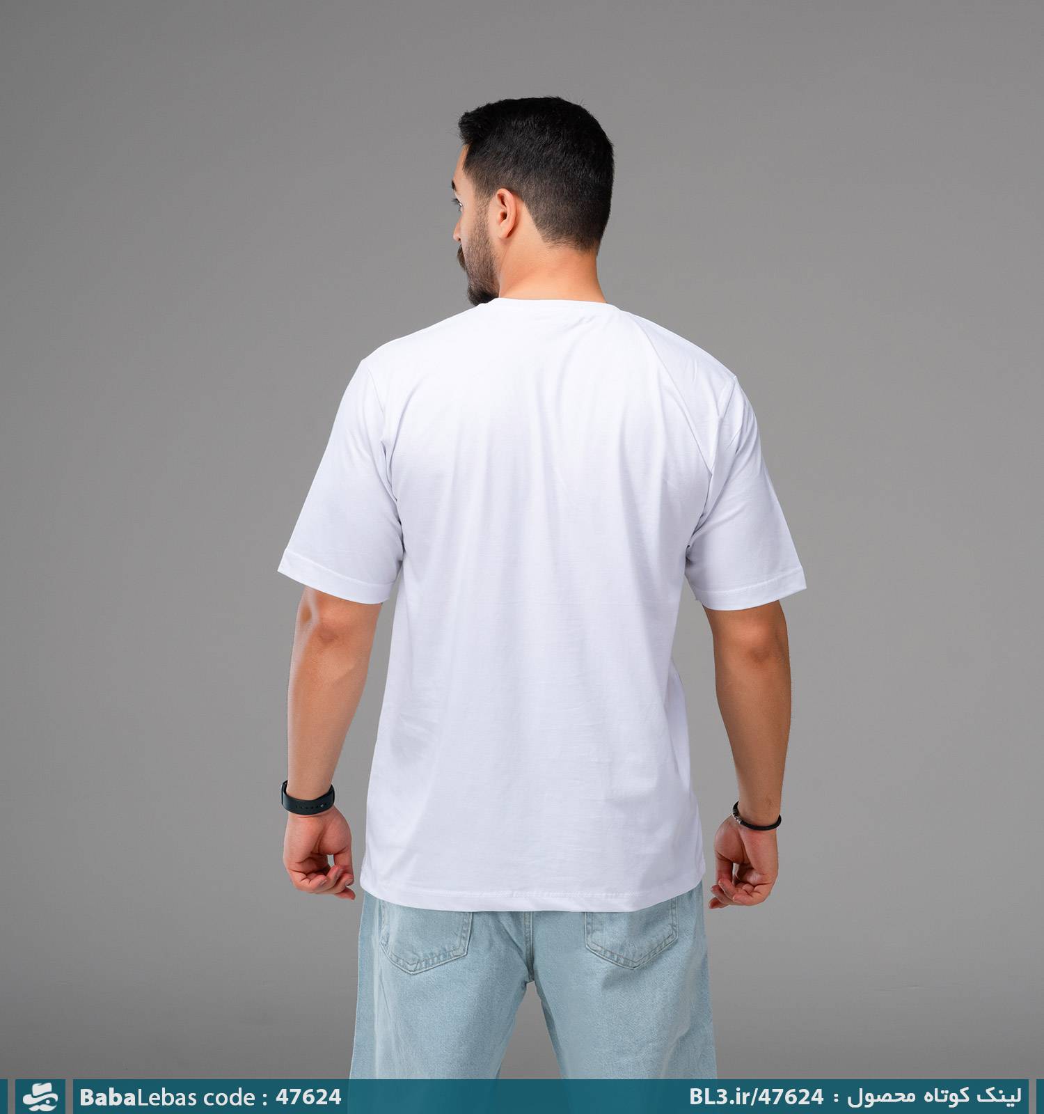 تیشرت یقه گرد مردانه سفید نخ پنبه گلدوزی شده مدل 47624