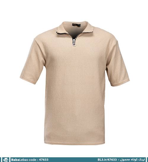 تیشرت بیسکویتی نیم زیپ یقه دار مردانه ساده مدل 47633