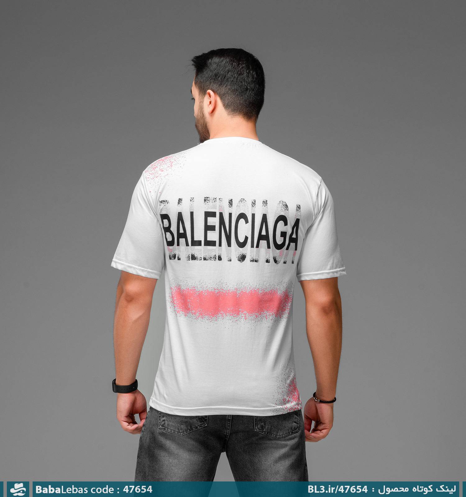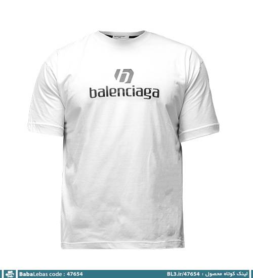 تیشرت یقه گرد مردانه نخ پنبه سفید طرح دار مدل 47654