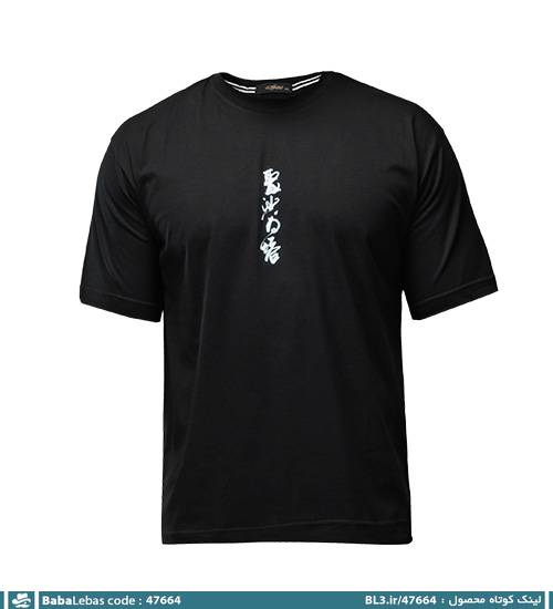 تیشرت یقه گرد مردانه مشکی ماکان طرح دار مدل 47664