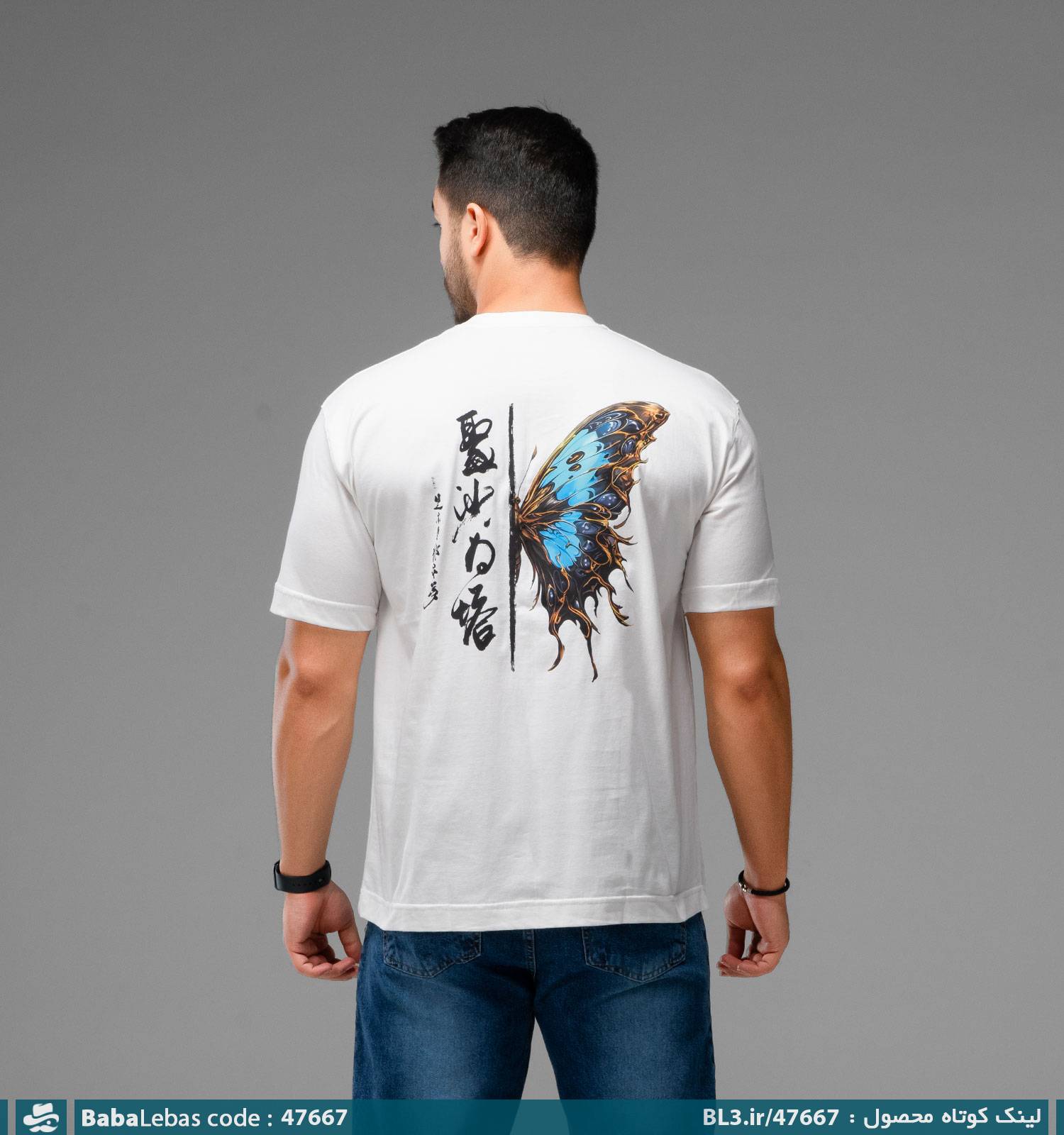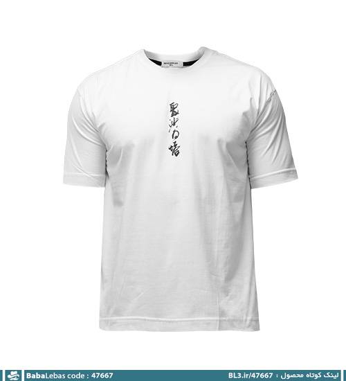 تیشرت یقه گرد مردانه سفید ماکان طرح دار مدل 47667