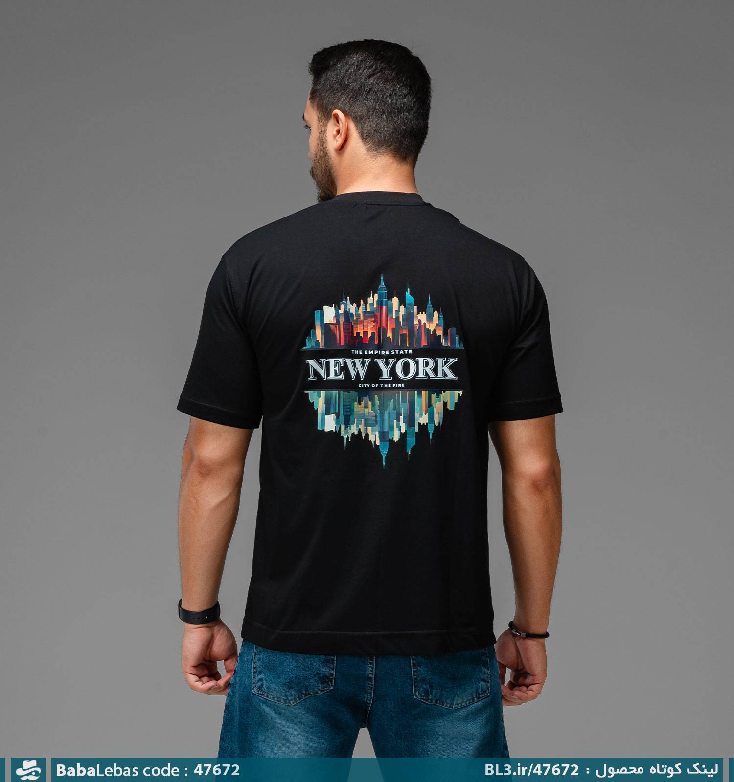 تیشرت یقه گرد مردانه مشکی ماکان طرح دار مدل 47672