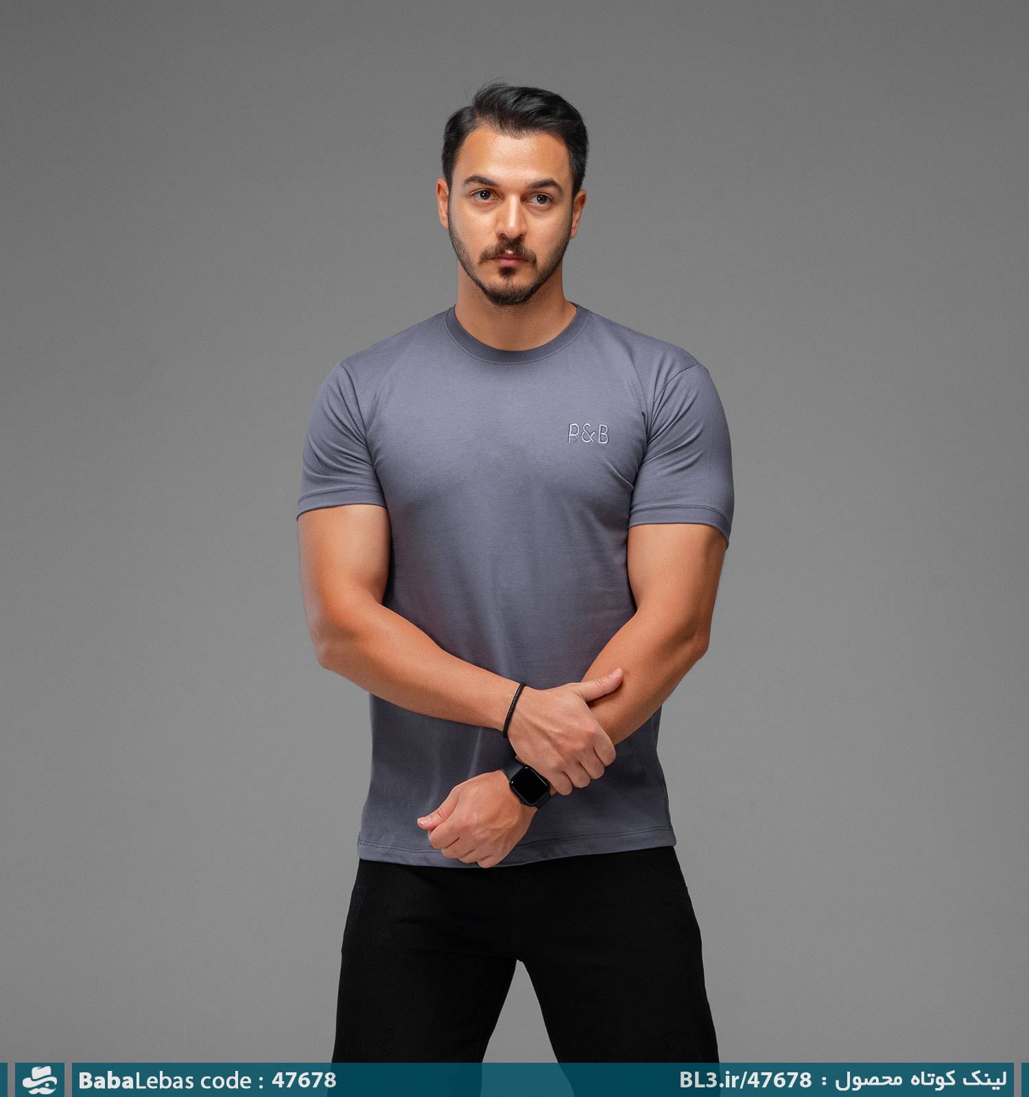 / تیشرت 026 یقه گرد مردانه طوسی نخ پنبه گلدوزی شده مدل 47678