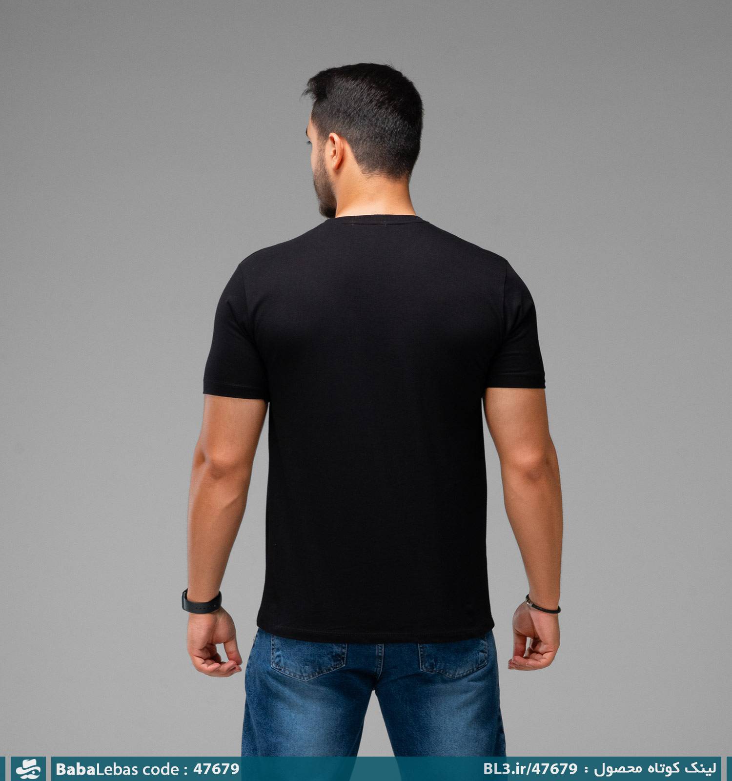 / تیشرت 026 یقه گرد مردانه مشکی نخ پنبه گلدوزی شده مدل 47679