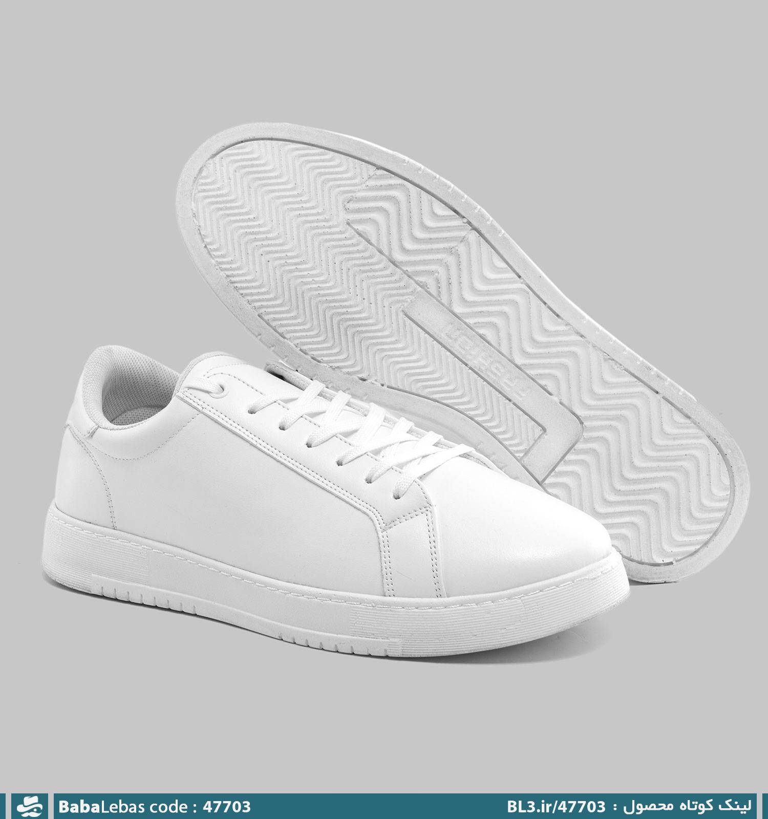 کفش روزمره چرم مصنوعی مردانه سفید بند دار مدل 47703