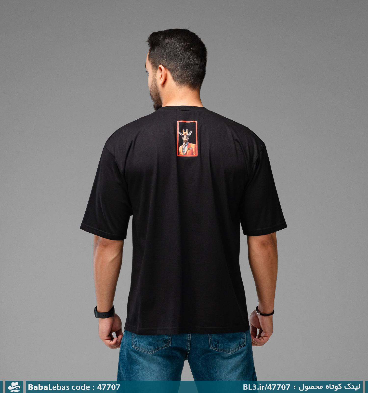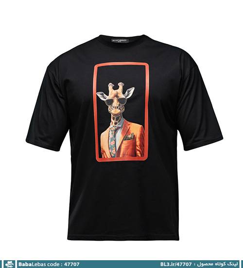 تیشرت لش باکسی مچینست نخ پنبه یقه گرد مشکی طرح دار مدل 47707