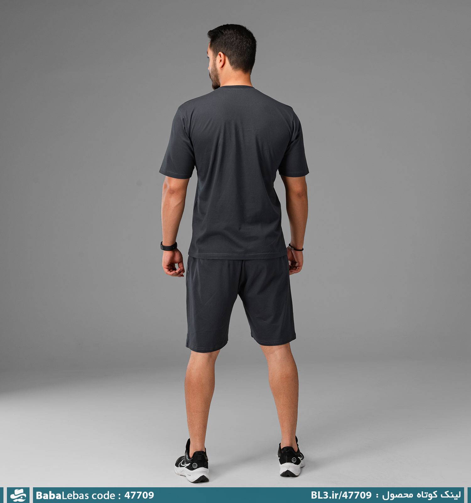 ست تیشرت و شلوارک مردانه طرح دار یقه گرد طوسی مدل 47709