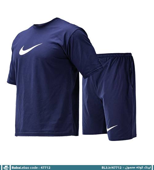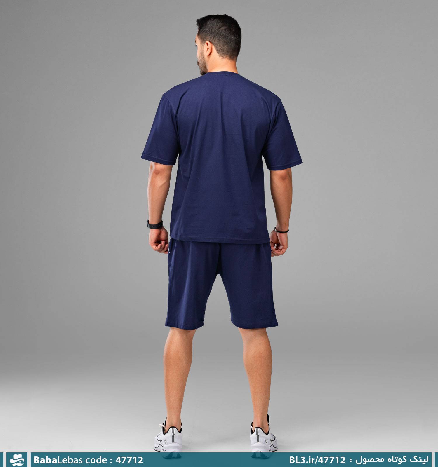ست تیشرت و شلوارک مردانه طرح دار یقه گرد سرمه ای مدل 47712