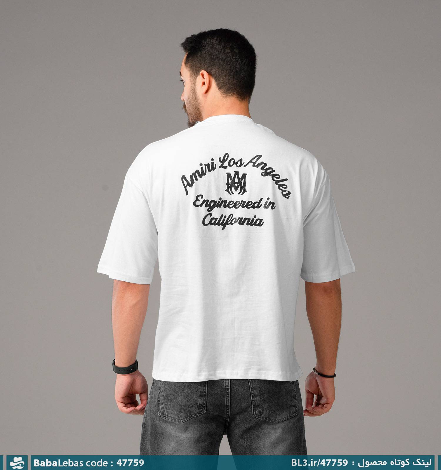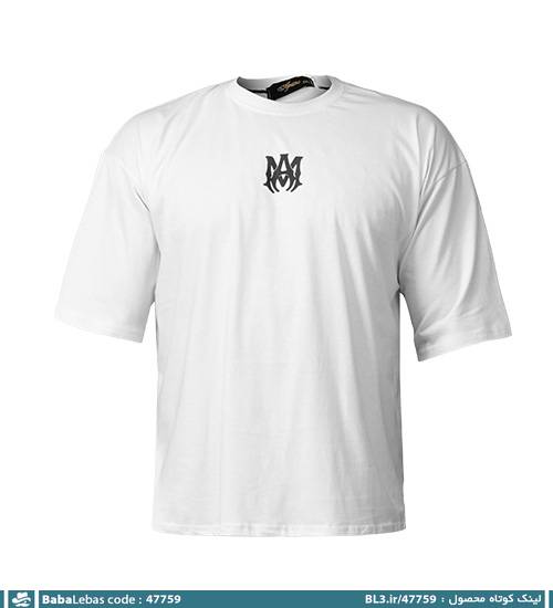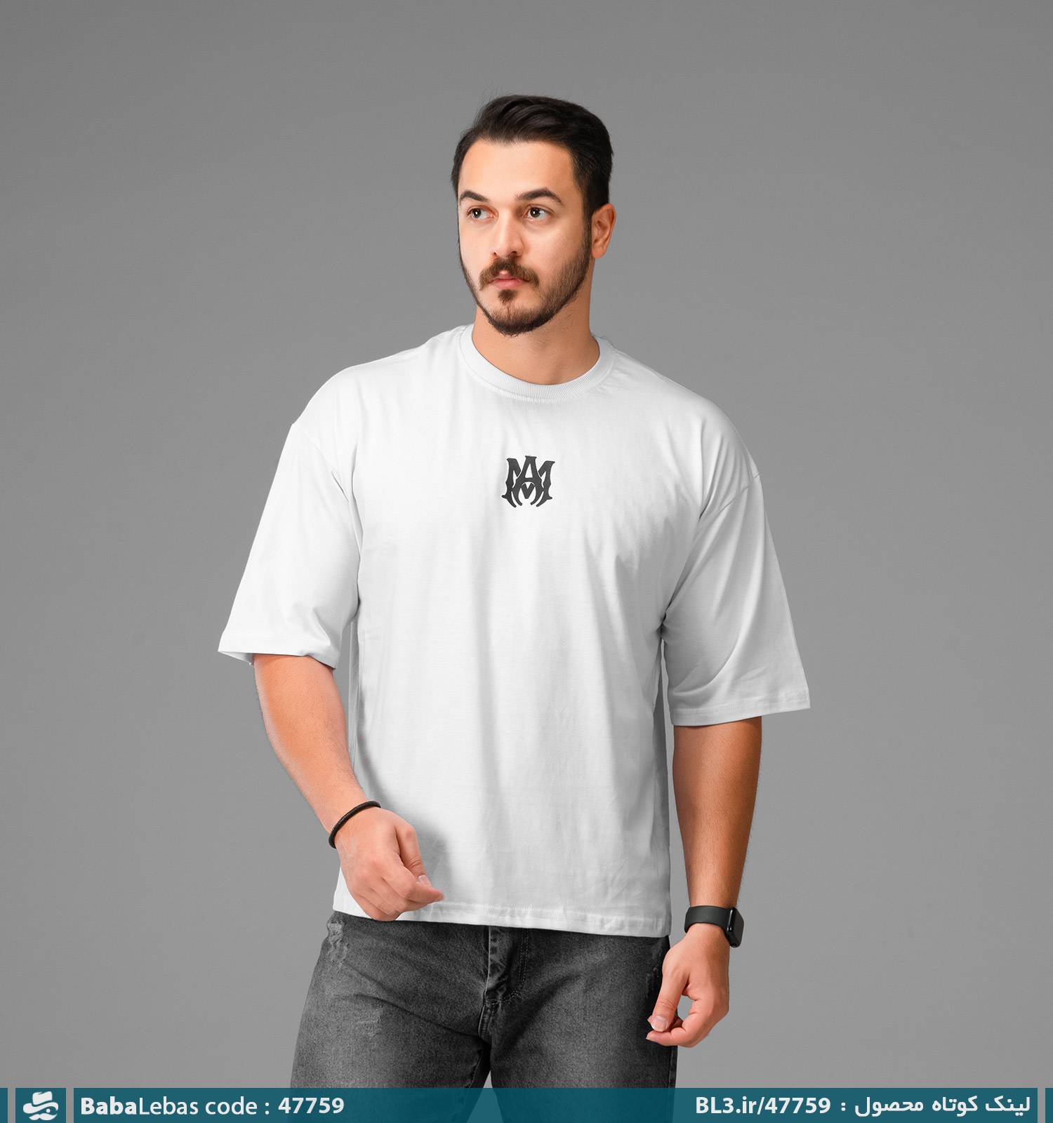 تیشرت باکسی نخ پنبه یقه گرد مردانه سفید طرح دار مدل 47759