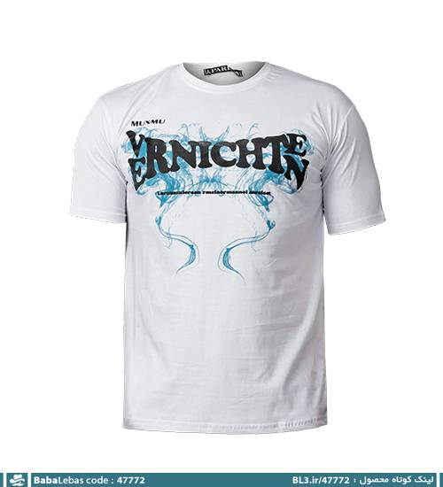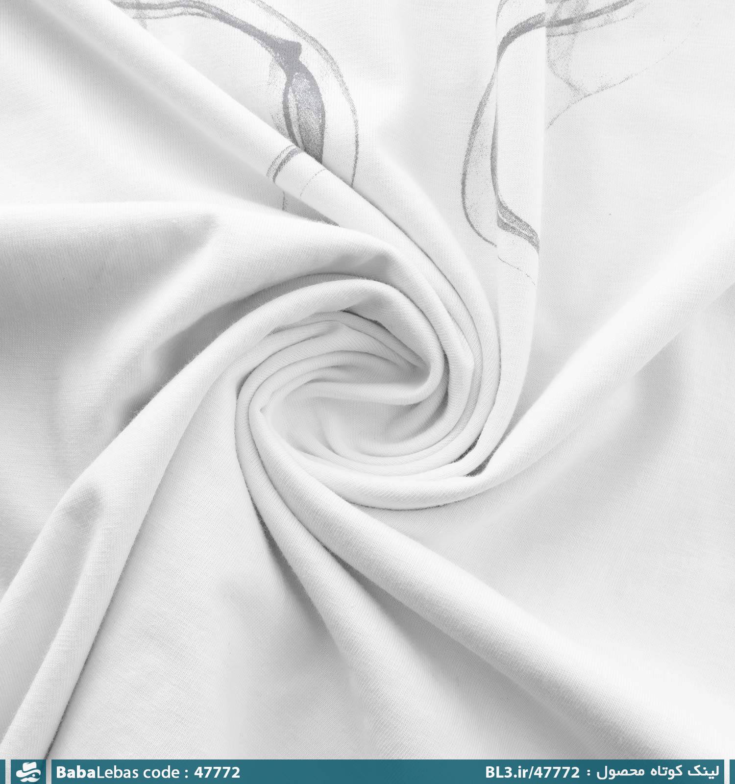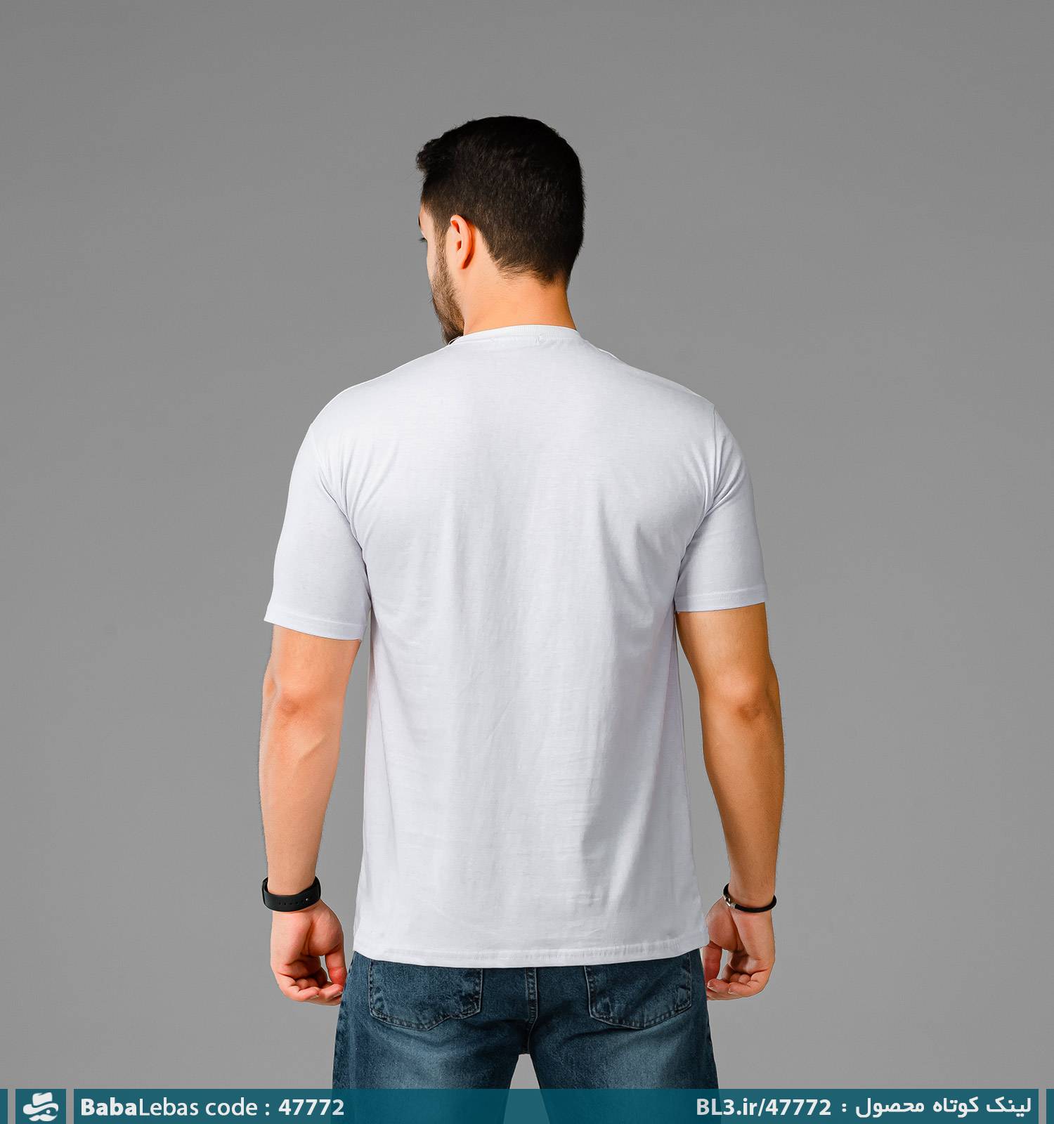 تیشرت یقه گرد مردانه سفید نخ پنبه طرح دار مدل 47772