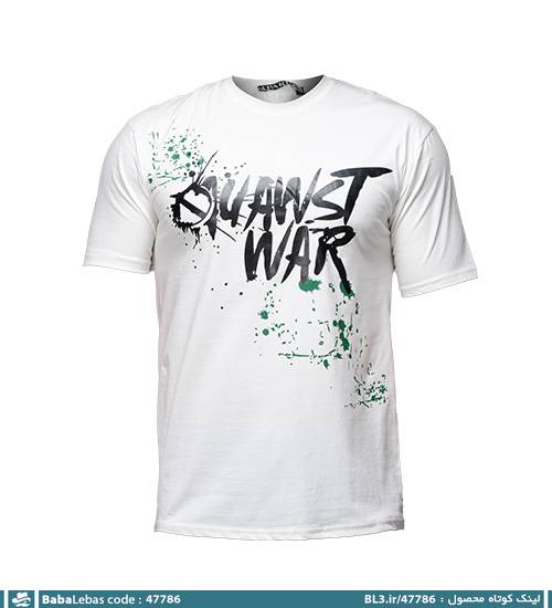 تیشرت نخ پنبه یقه گرد مردانه سفید طرح دار مدل 47786