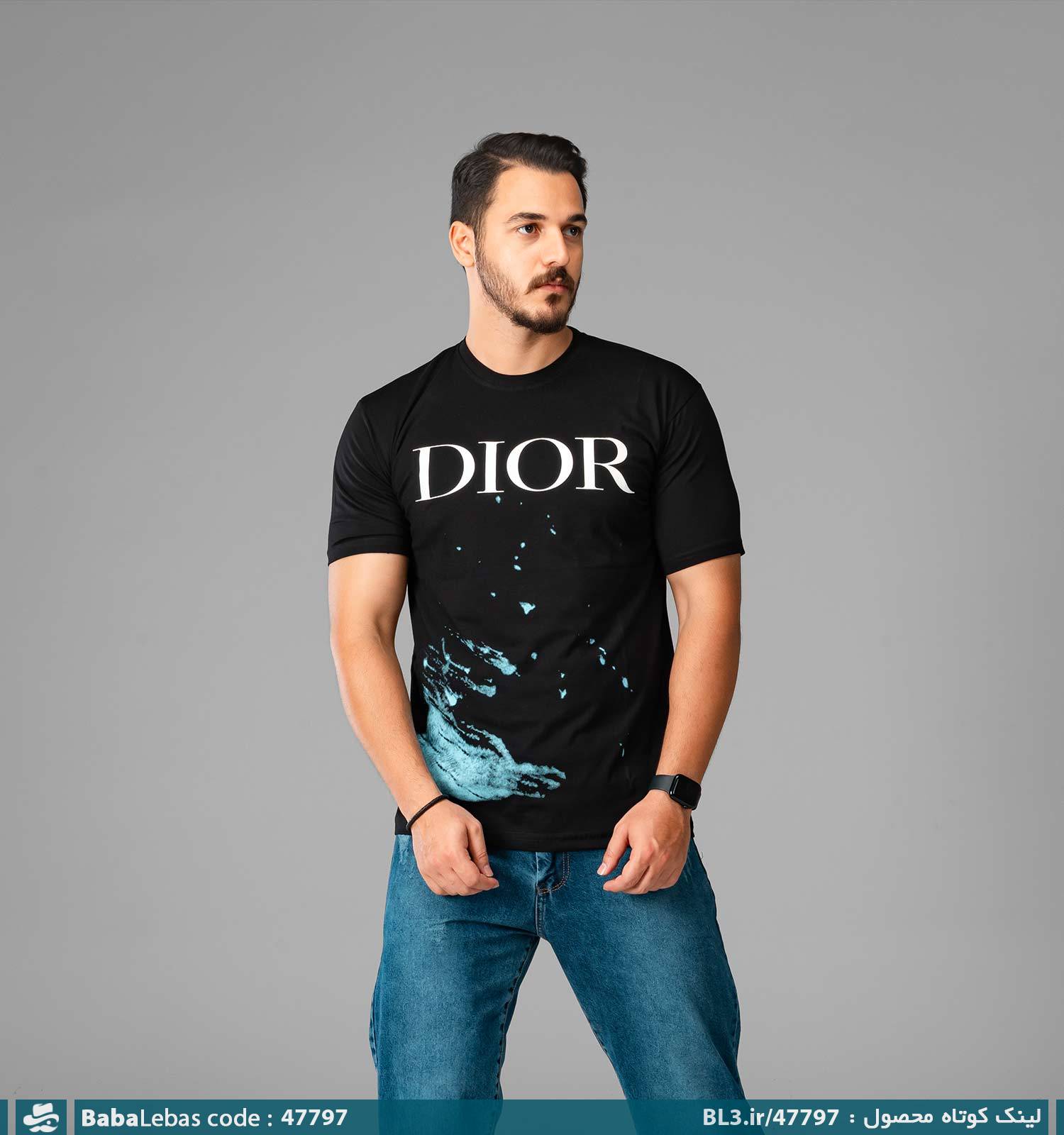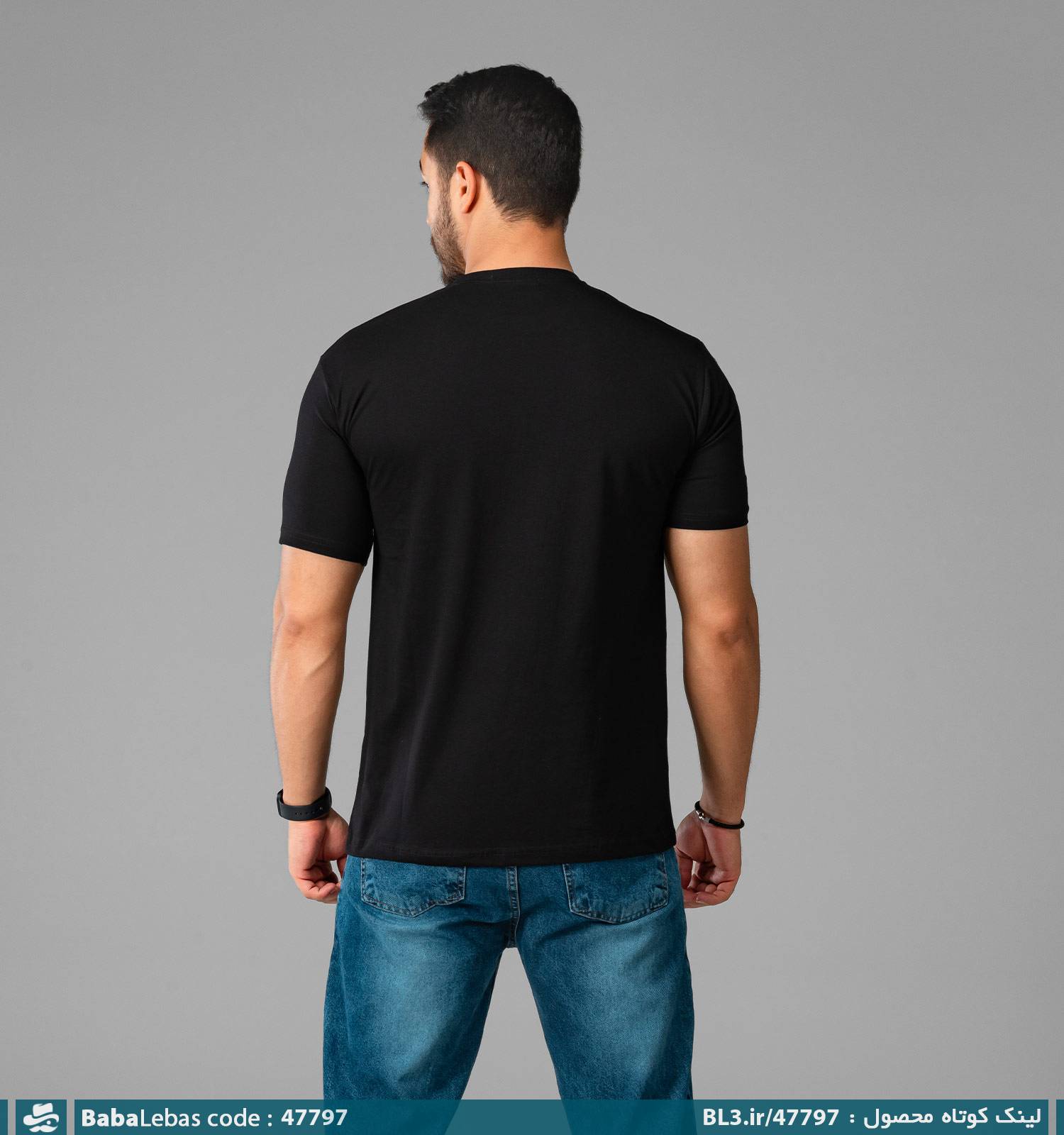 تیشرت نخ پنبه یقه گرد مردانه مشکی طرح دار مدل 47797