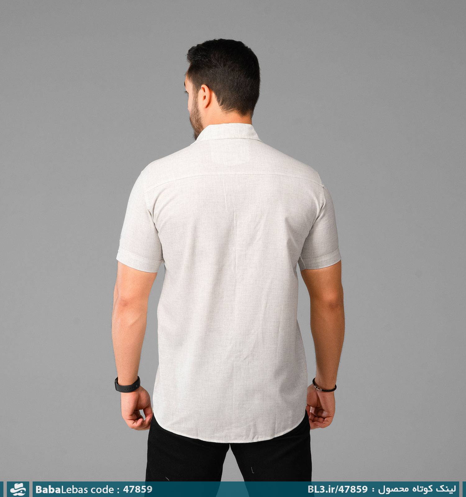 پیراهن اسپرت کنفی ترک مردانه سفید ساده آستین کوتاه مدل 47859
