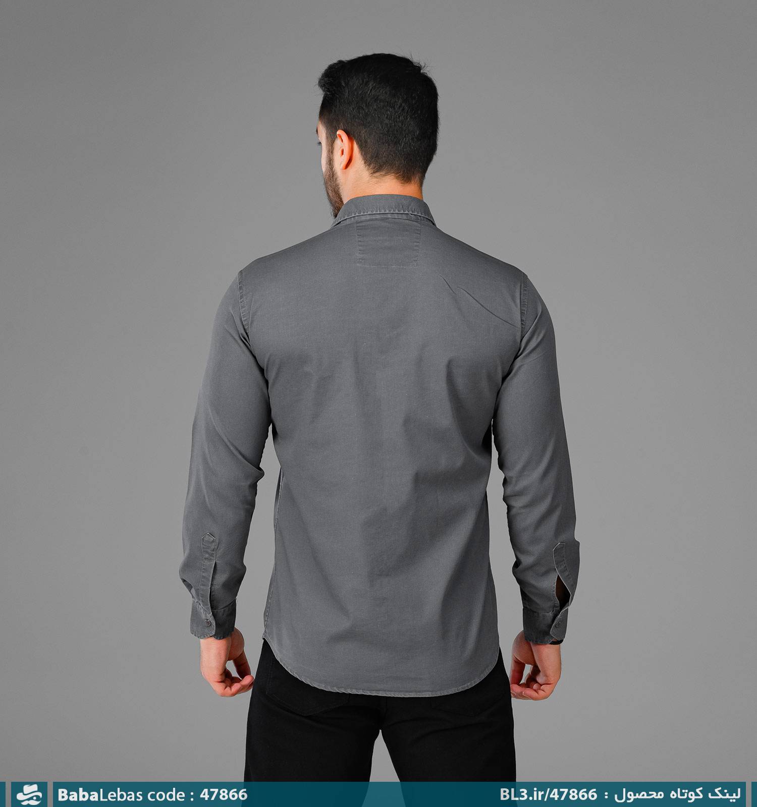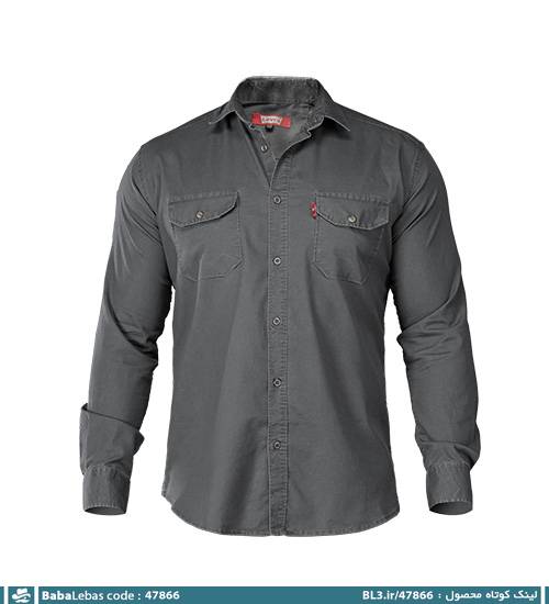 پیراهن اسپرت کتان جیب دارمردانه طوسی ساده آستین بلند مدل 47866