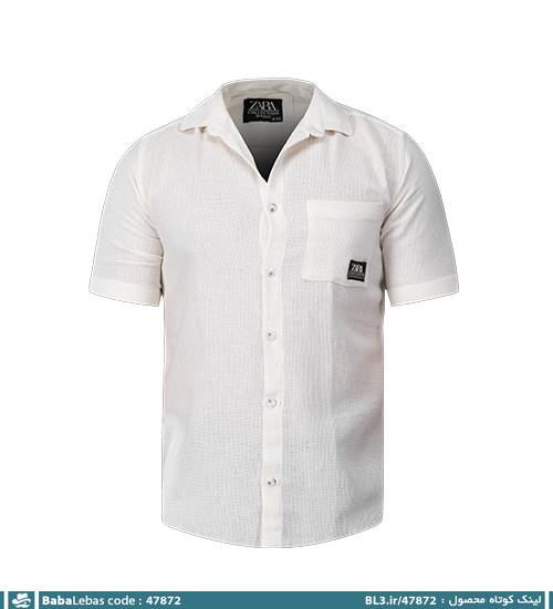 پیراهن اسپرت کنفی مردانه سفید ساده آستین کوتاه مدل 47872