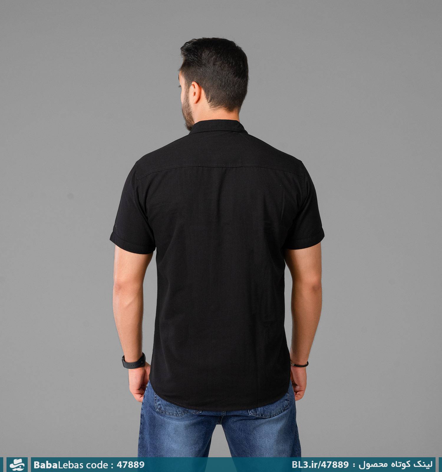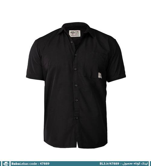 پیراهن اسپرت لینن مردانه مشکی ساده آستین کوتاه مدل 47889